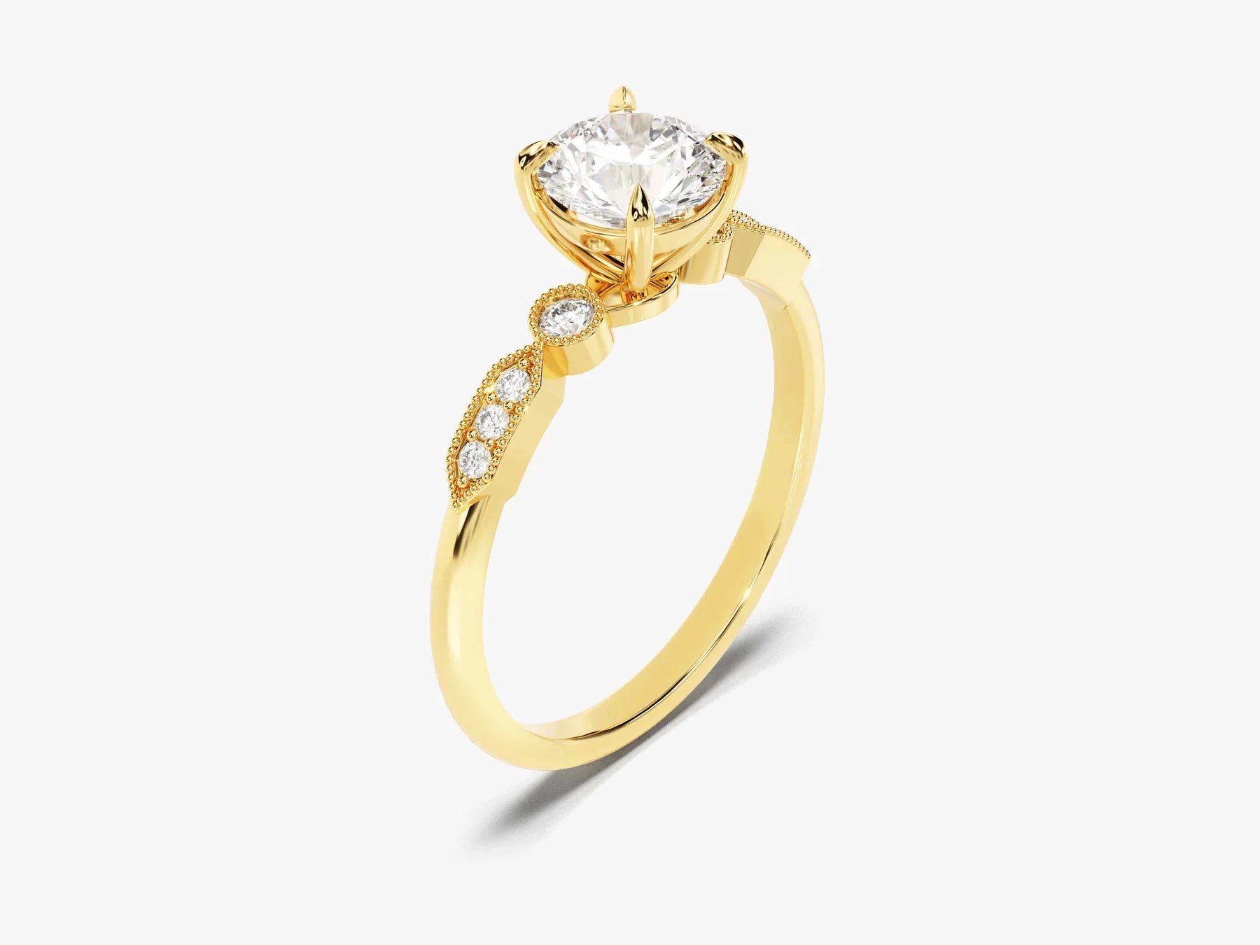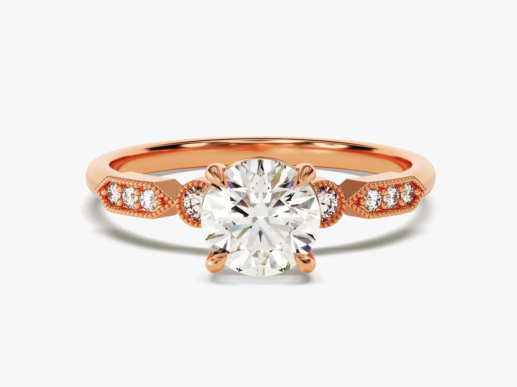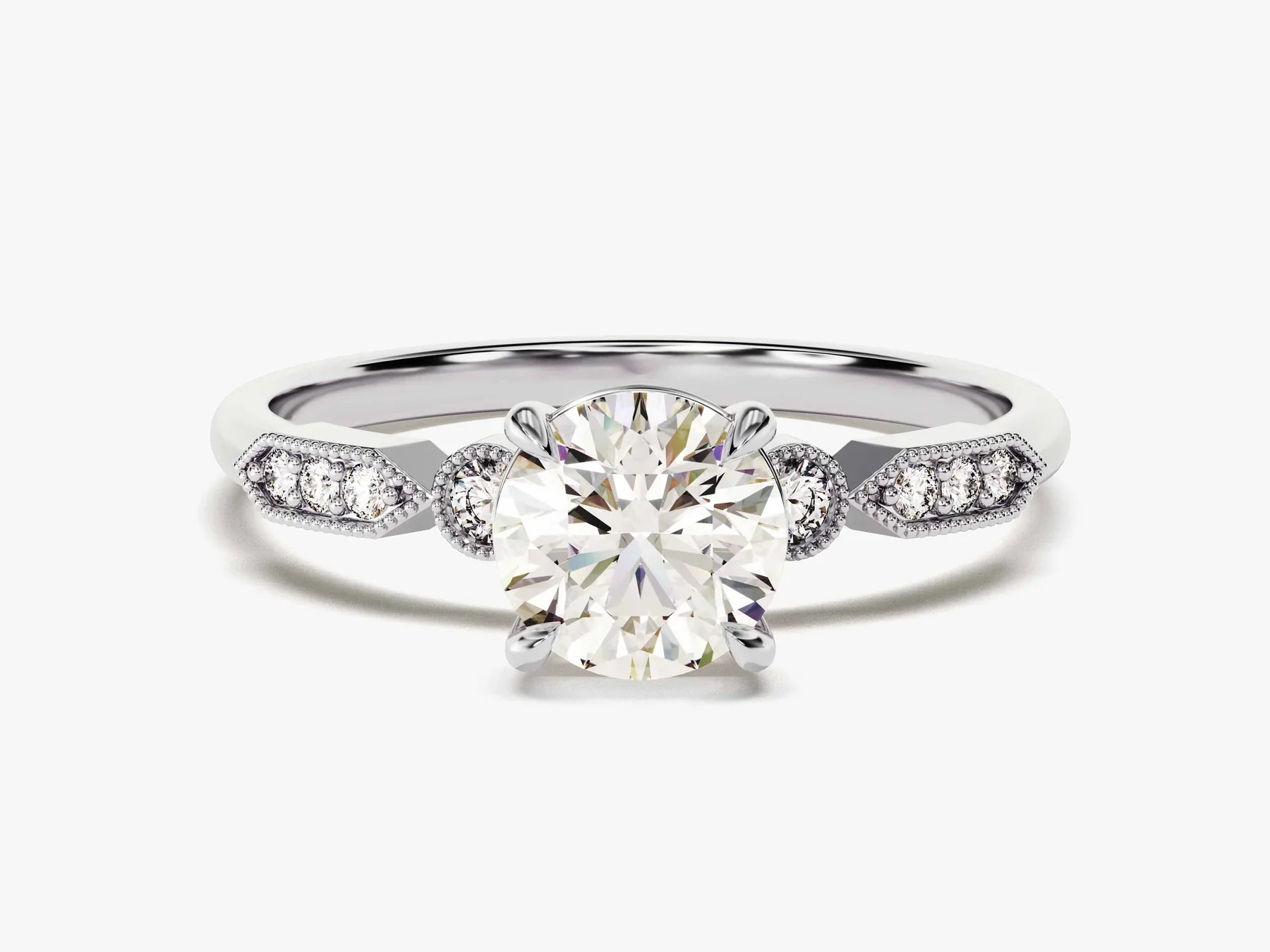 1.0CT Round Cut Diamond Milgrain Art Deco Moissanite Engagement Ring