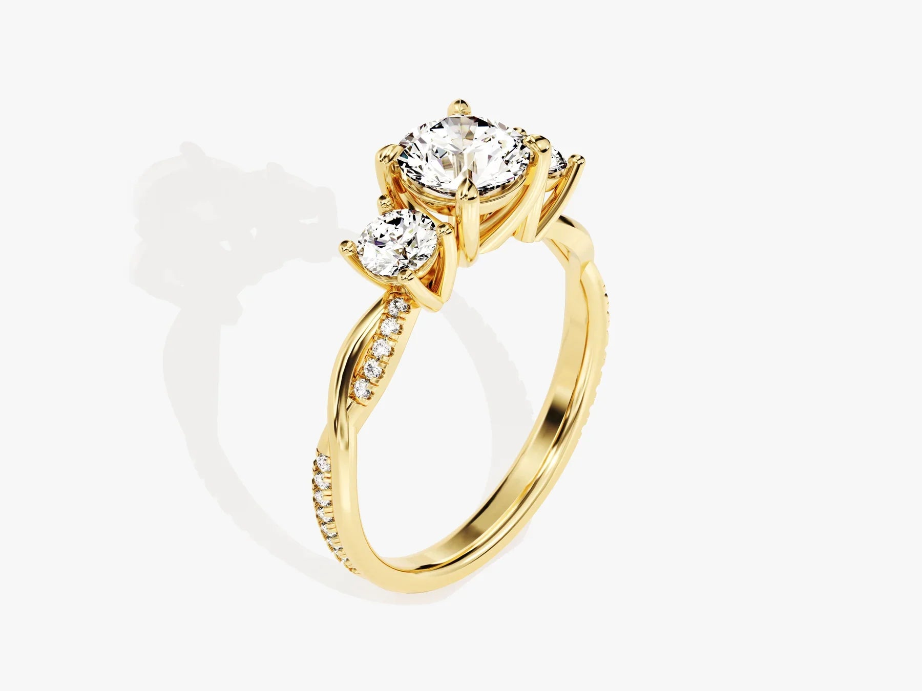 1.0CT Round Cut Diamond Three Stone Pave Setting Moissanite Engagement Ring