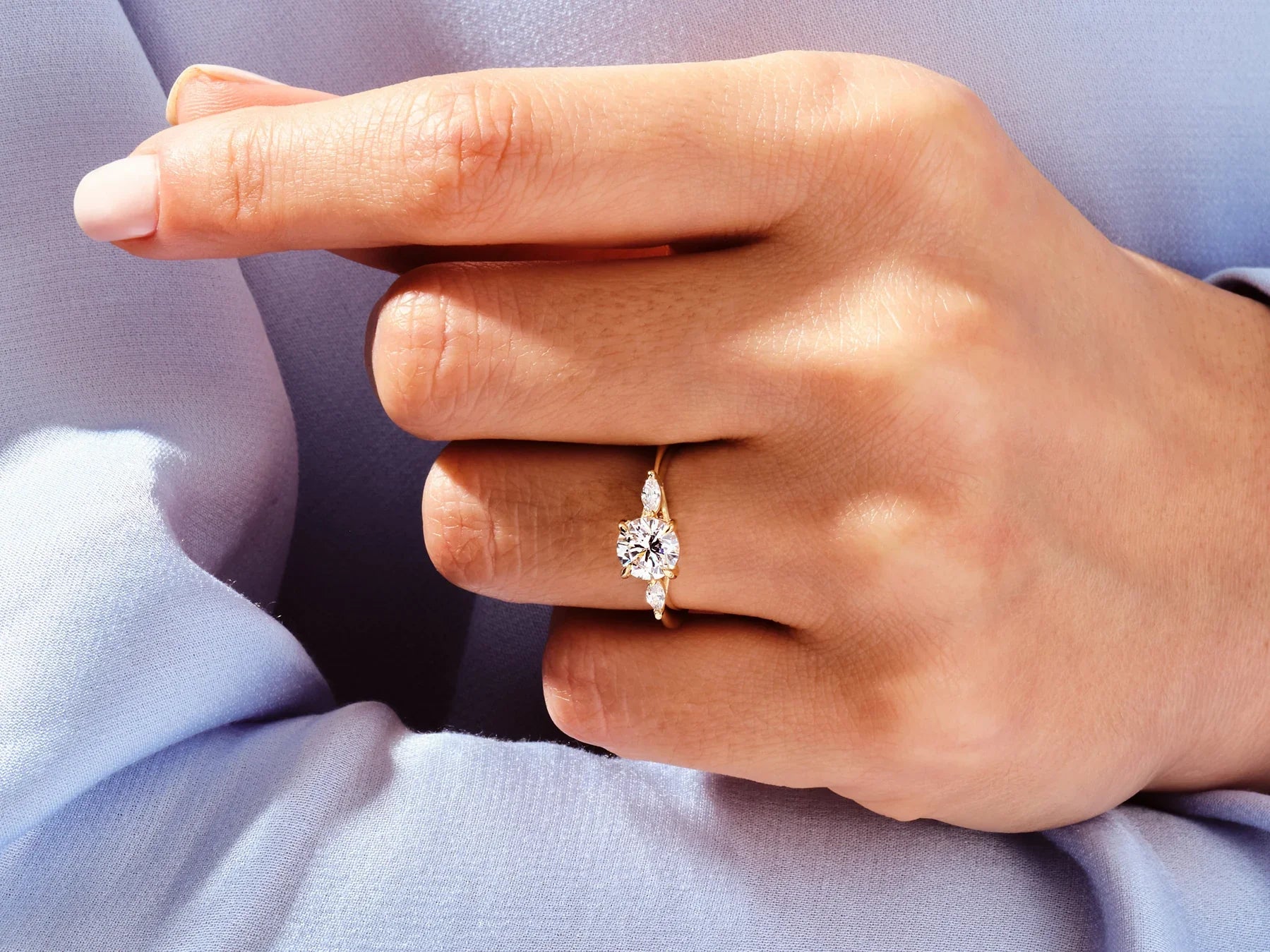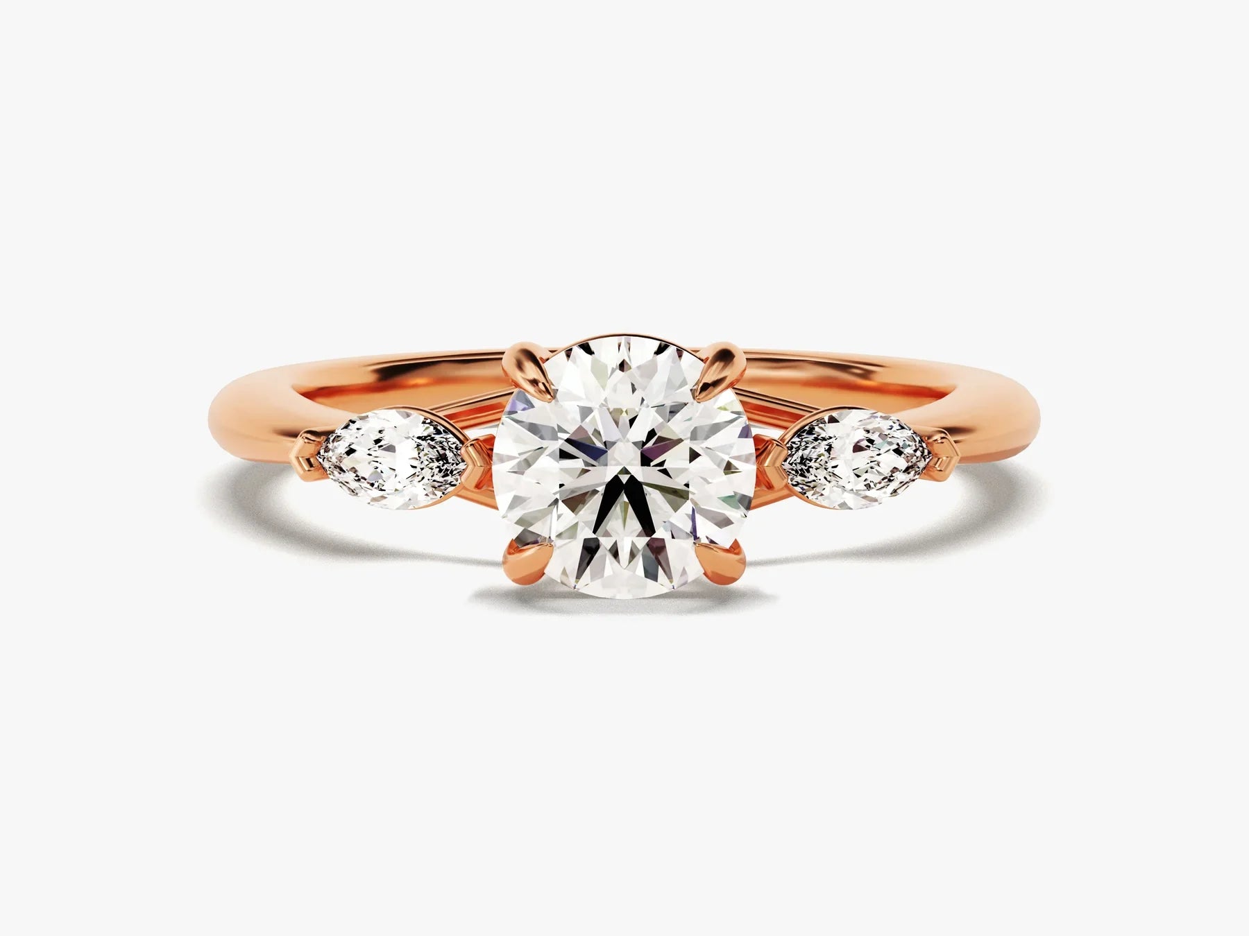 1.0CT Round & Marquise Diamond Three Stone Setting Moissanite Engagement Ring