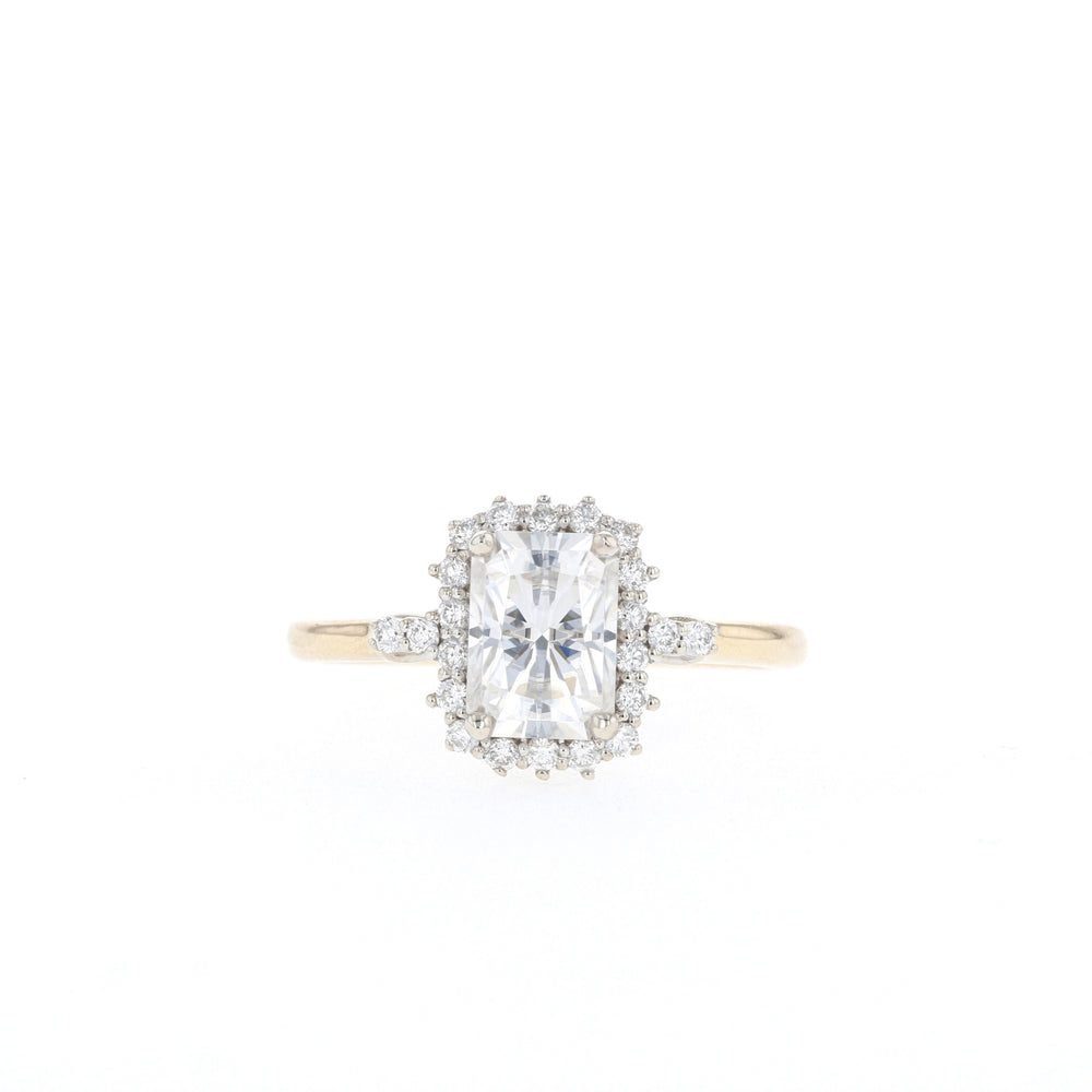1.10CT Emerald Cut Moissanite Halo Diamond Engagement Ring