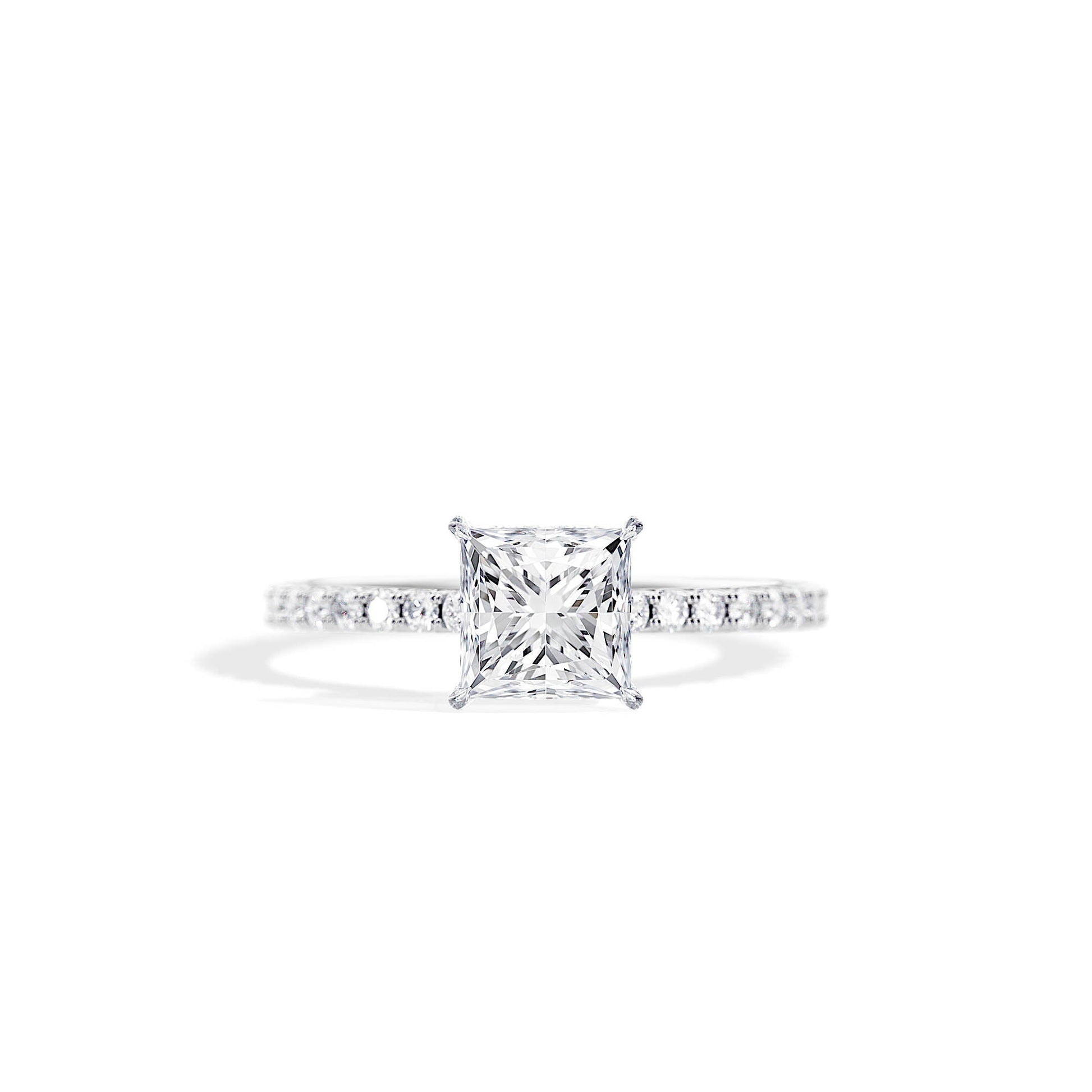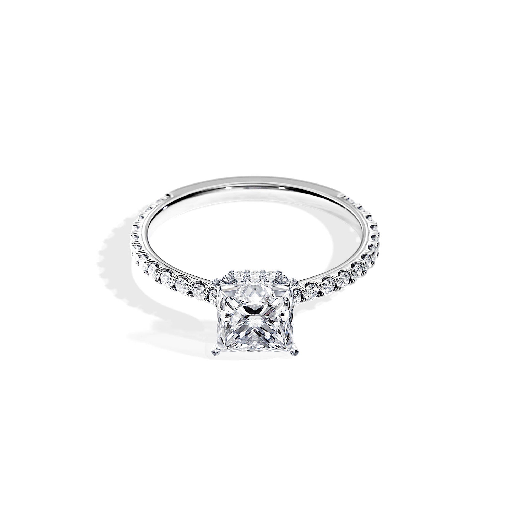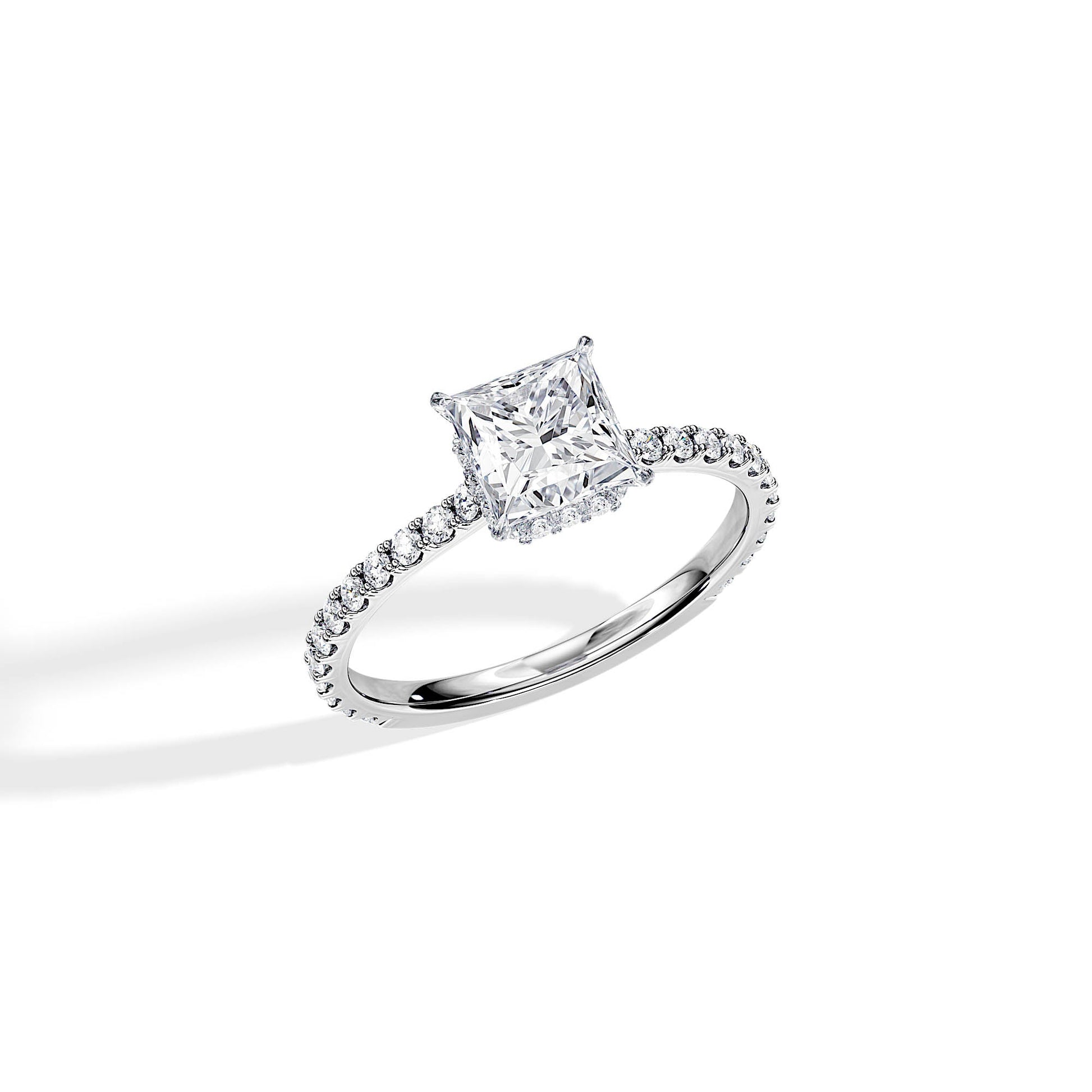 1.20 CT Princess Cut Moissanite Hidden Halo & Pave Engagement Ring