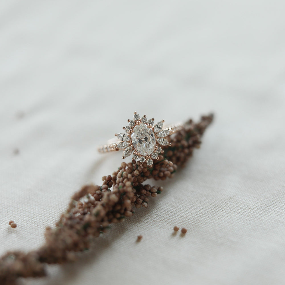 1.20CT Oval Cut Cluster Moissanite Diamond Engagement Ring
