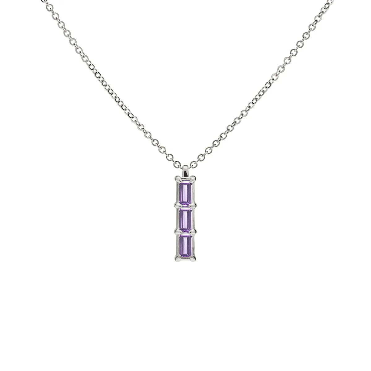 1.26 TCW Baguette Cut Three Stone Moissanite February Birthone Necklace