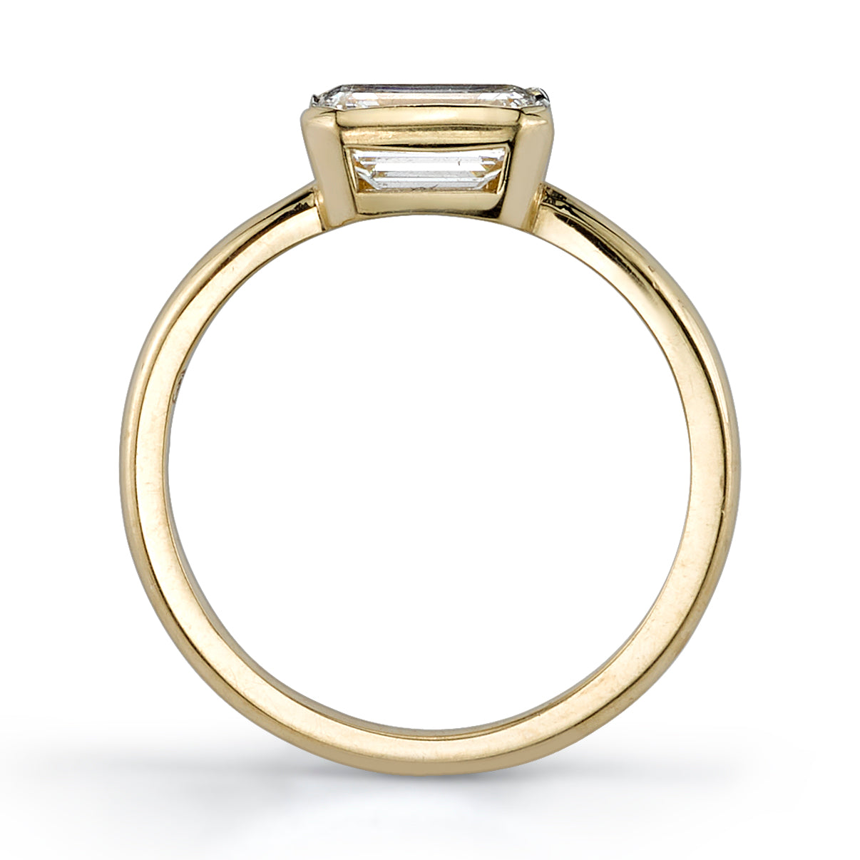 1.28ct Emerald Cut Bezel Moissanite East West Solitaire Diamond Engagement Ring