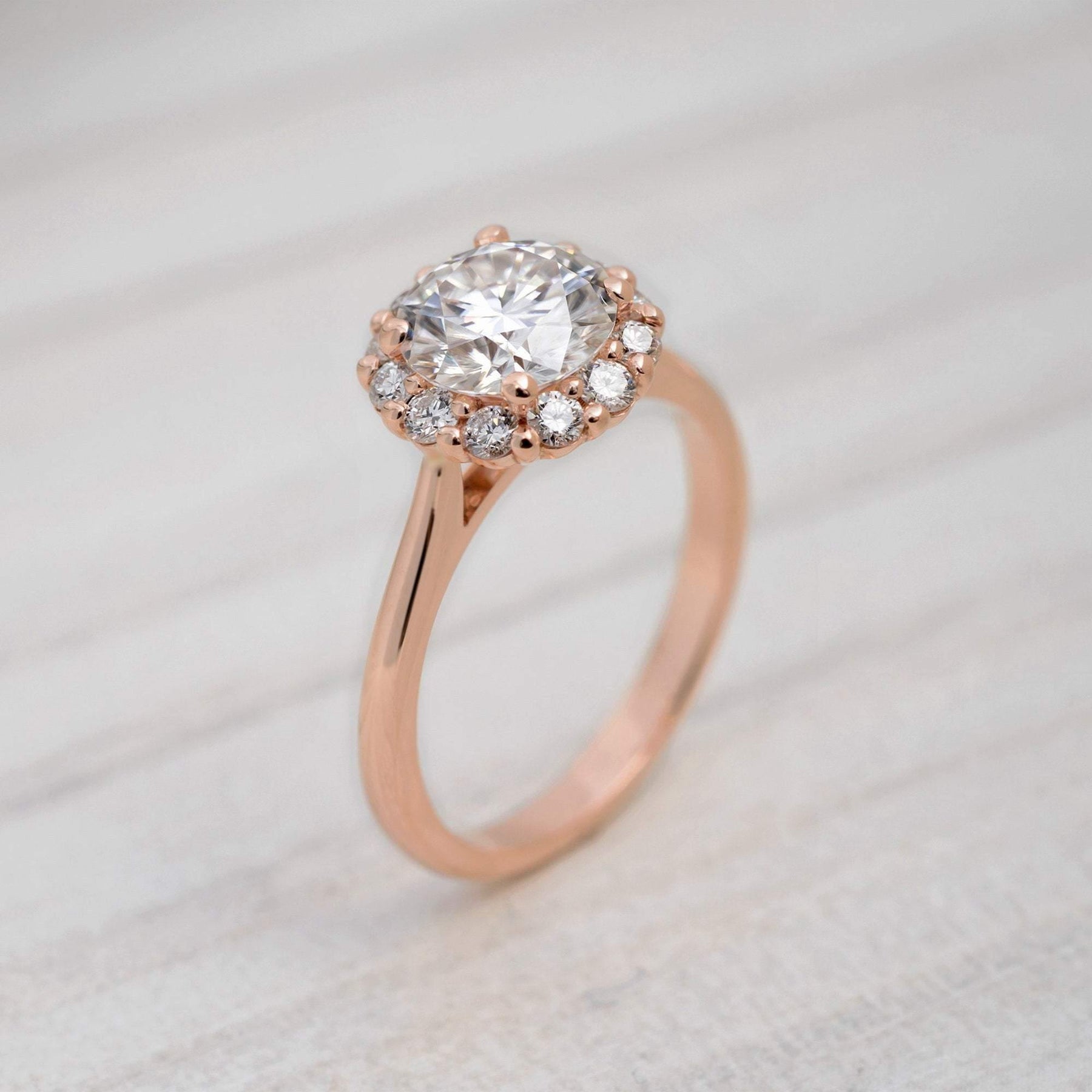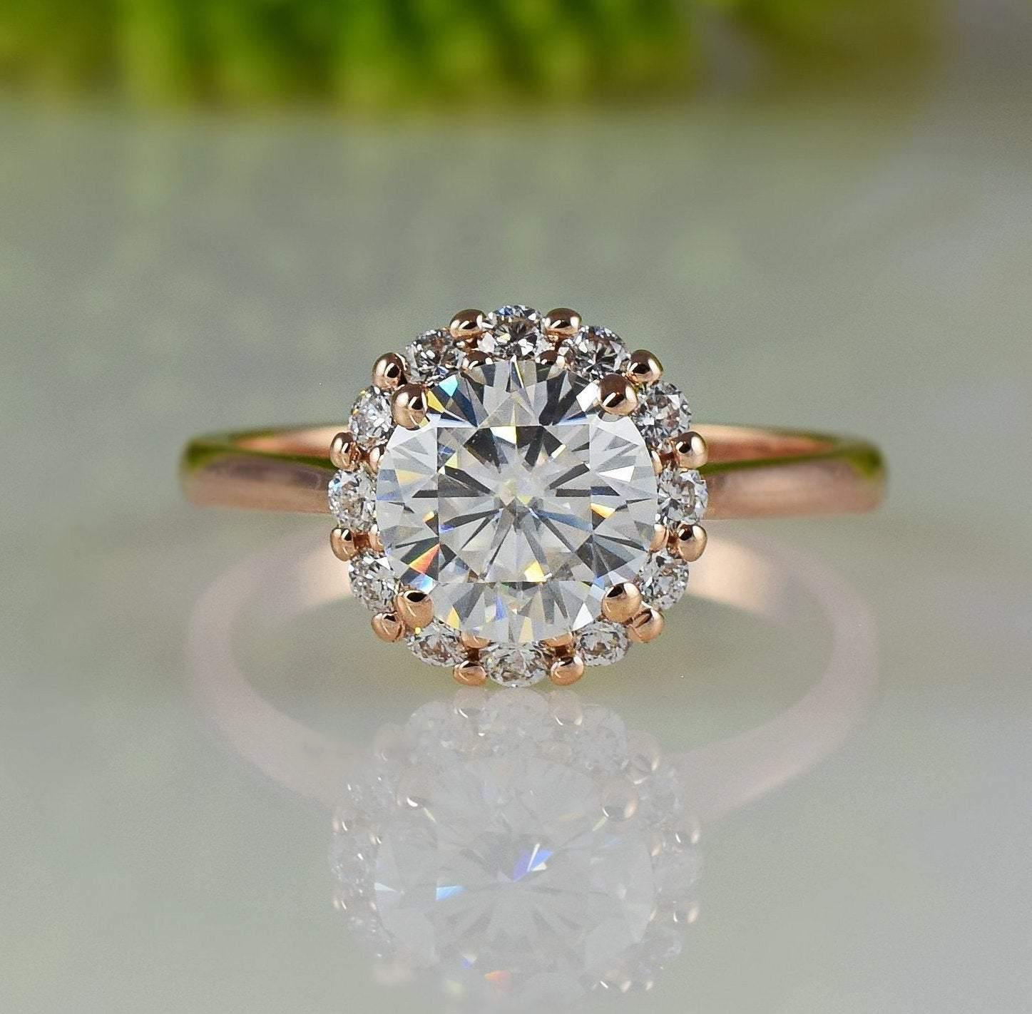 1.20ct Round Brilliant Diamond Halo Moissanite Engagement Ring