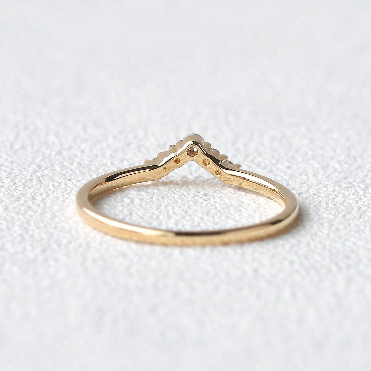 ✥ Elevate your wedding ensemble with our 1.3 MM Round Brilliant Cut V Curved Moissanite Wedding Band. a delicate masterpiece that effortlessly marries timeless elegance with modern design. The slender band features precisely set 1.3mm round brilliant-cut moissanite stones. creating a captivating curve that complements your engagement ring or stands gracefully on its own. The V-shaped design adds a touch of sophistication and uniqueness to this wedding band. symbolizing the union of two individuals on a shared journey. Ethically sourced moissanite ensures both a dazzling sparkle and a conscious choice for a symbol of everlasting commitment. This exquisite wedding band is a testament to the refined beauty found in simplicity. promising a lifetime of grace and enduring love.