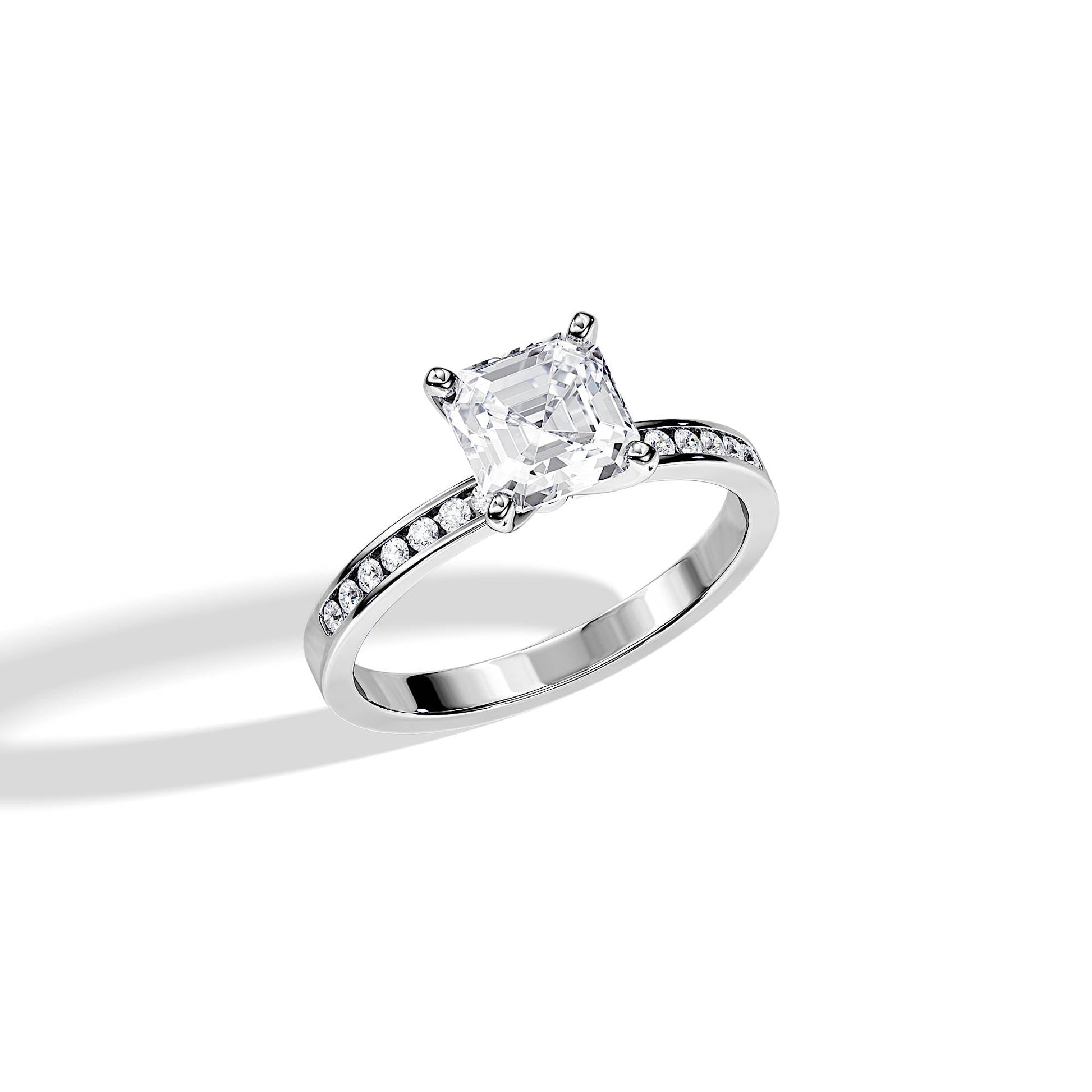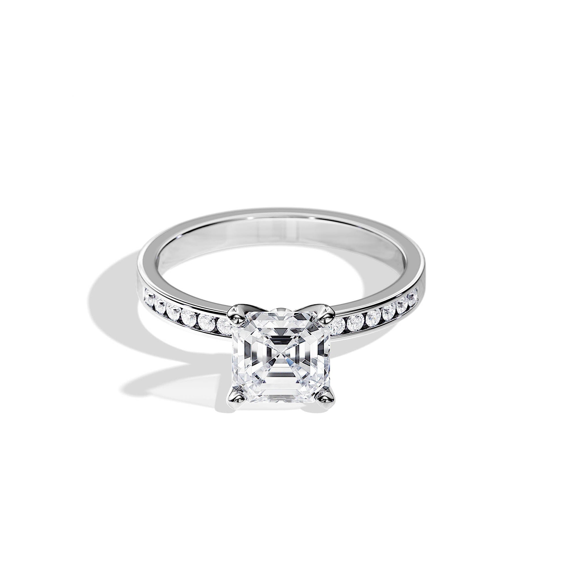 1.30 CT Asscher Cut Moissanite pave setting Engagement Ring