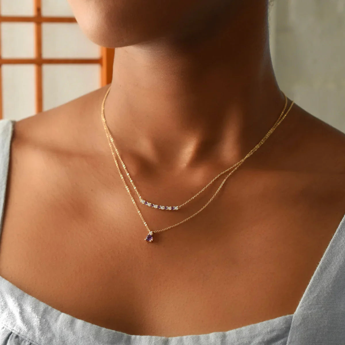 ✧ The 1.35TCW Round Amethyst Moissanite Diamond February Birthstone Necklace features a stunning combination of round-cut amethyst moissanite stones and sparkling diamonds. totaling 1.35 carats. The vibrant purple amethyst. representing February birthdays. is beautifully accented by the brilliance of diamonds. creating a luxurious and elegant piece. This necklace is a perfect gift to celebrate a February birth. offering both style and sentimental value. With its exquisite design. it adds a sophisticated touch to any occasion.