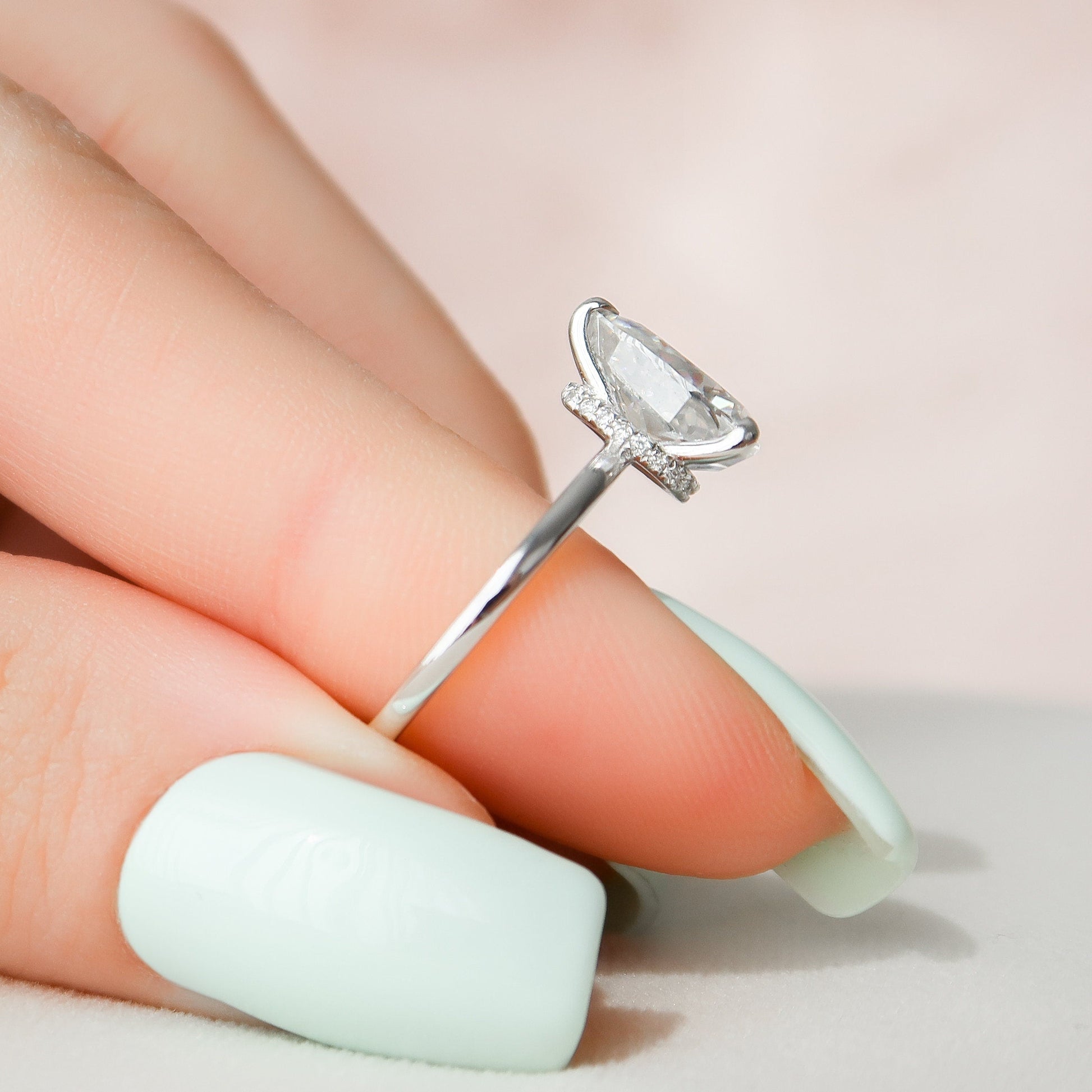 1.50CT Pear Cut Moissanite Hidden Halo Engagement Ring