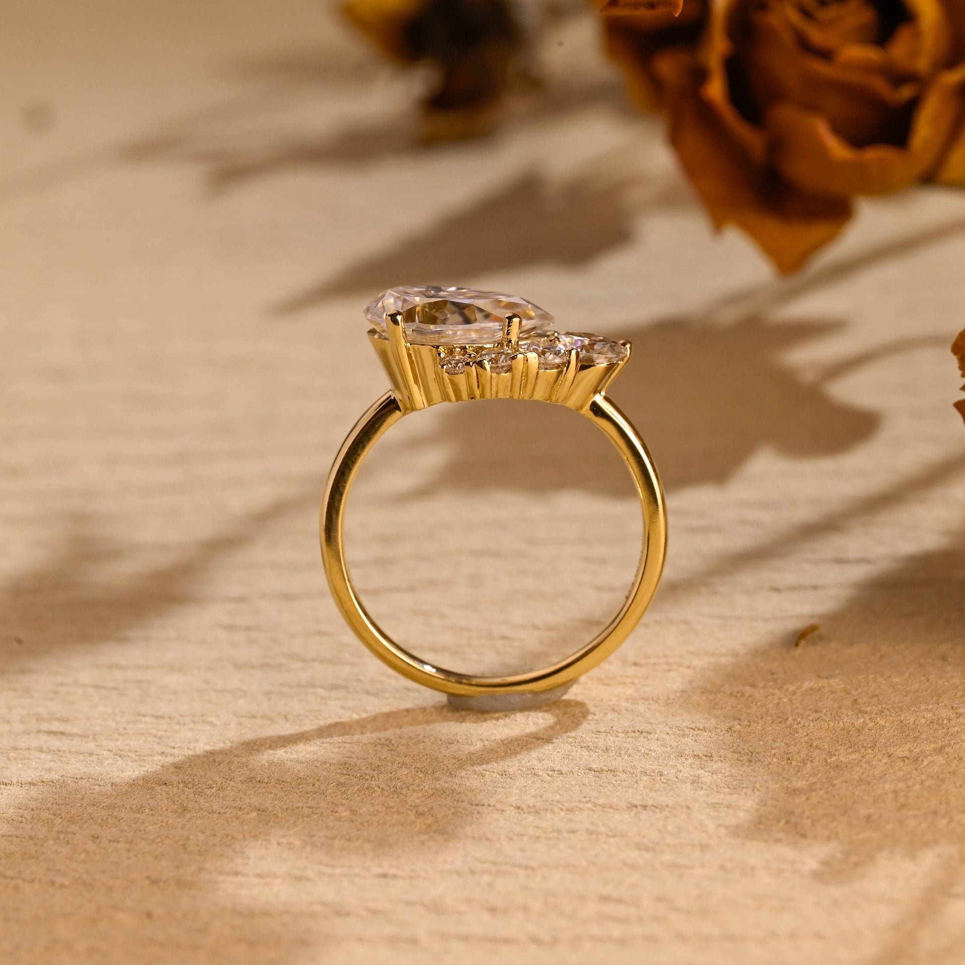 1.50 CT East West Pear Diamond Cluster Moissanite Engagement Ring