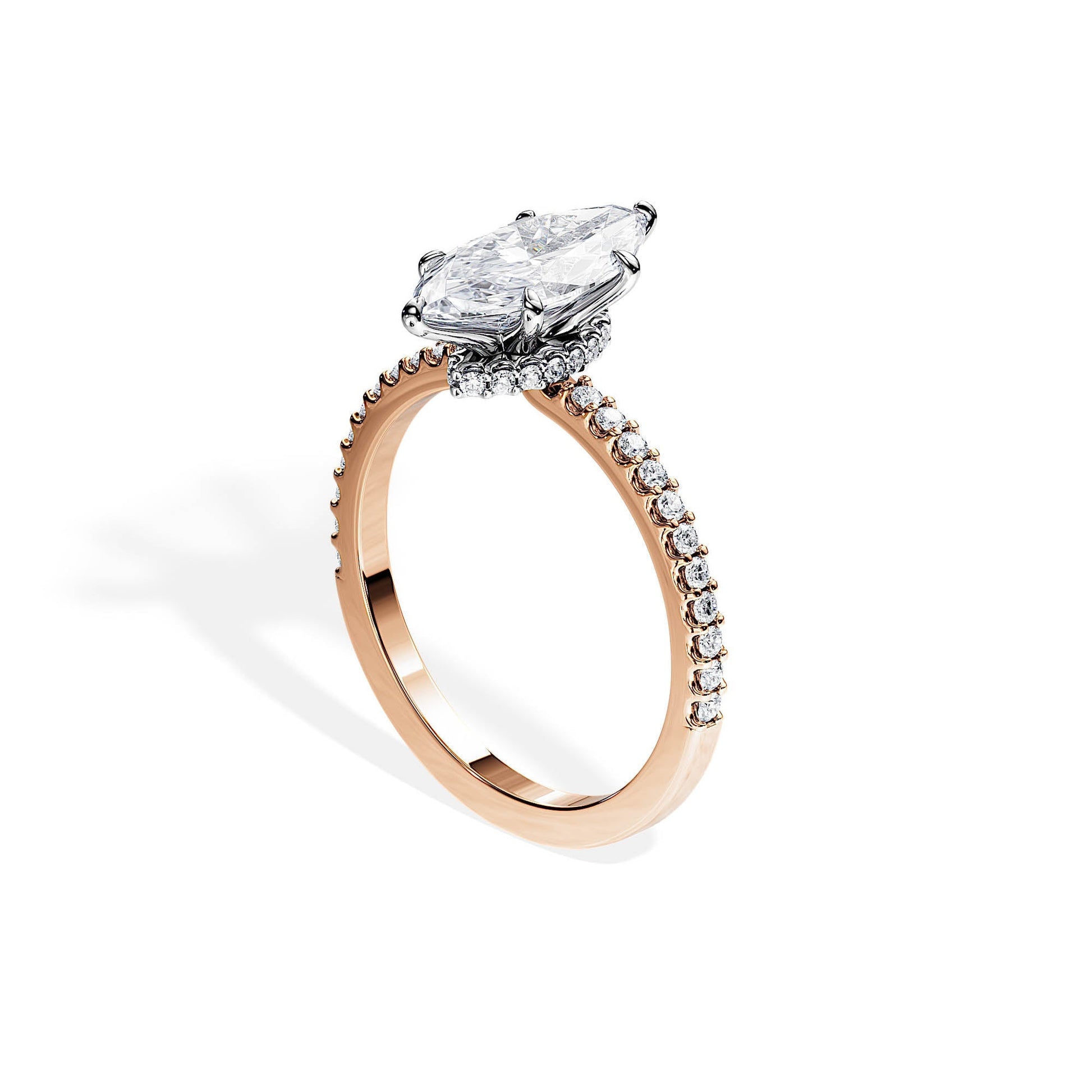 1.50 CT Marquise Moissanite Hidden Halo & Pave Engagement Ring