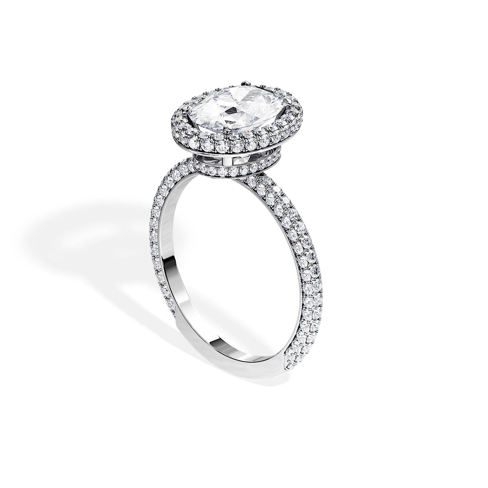 1.50 CT Oval Cut Moissanite Halo & Pave Engagement Ring