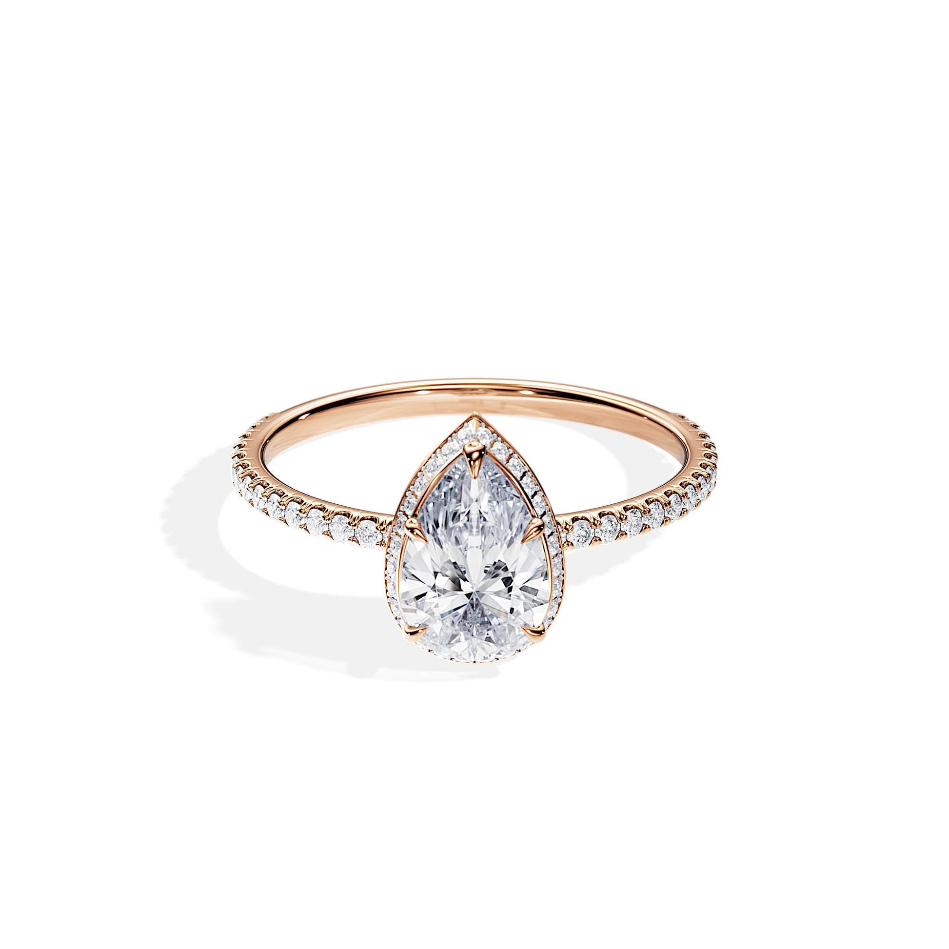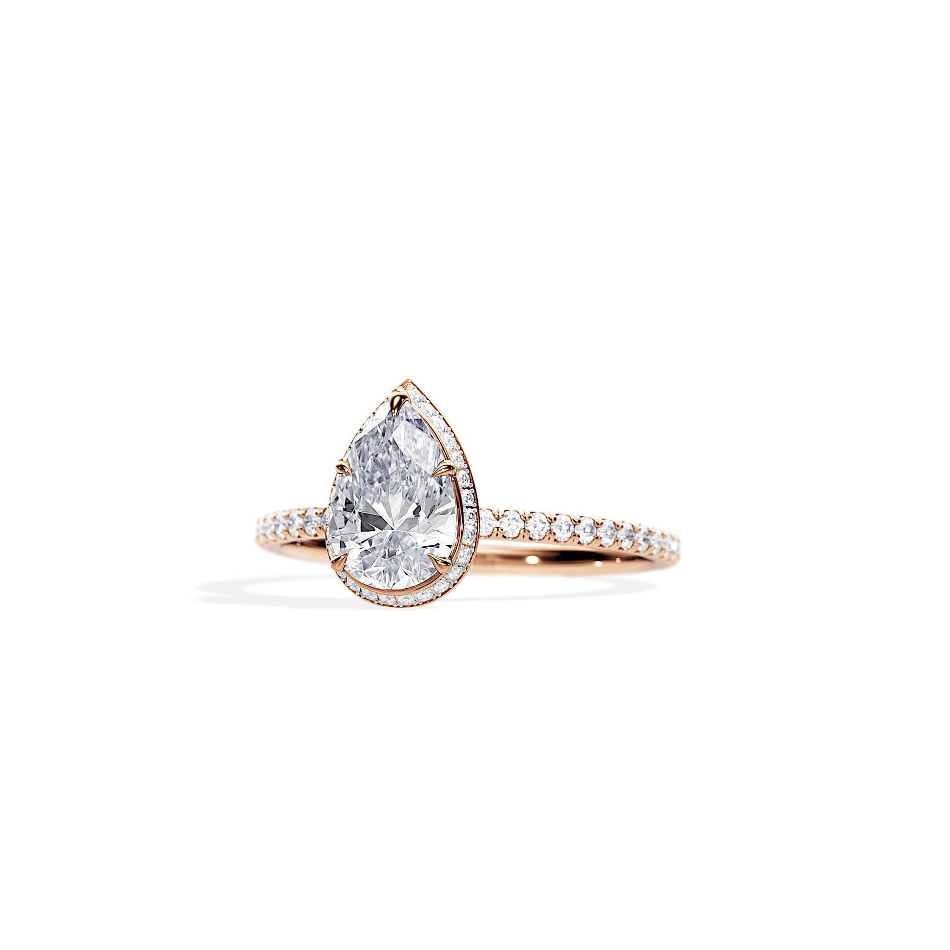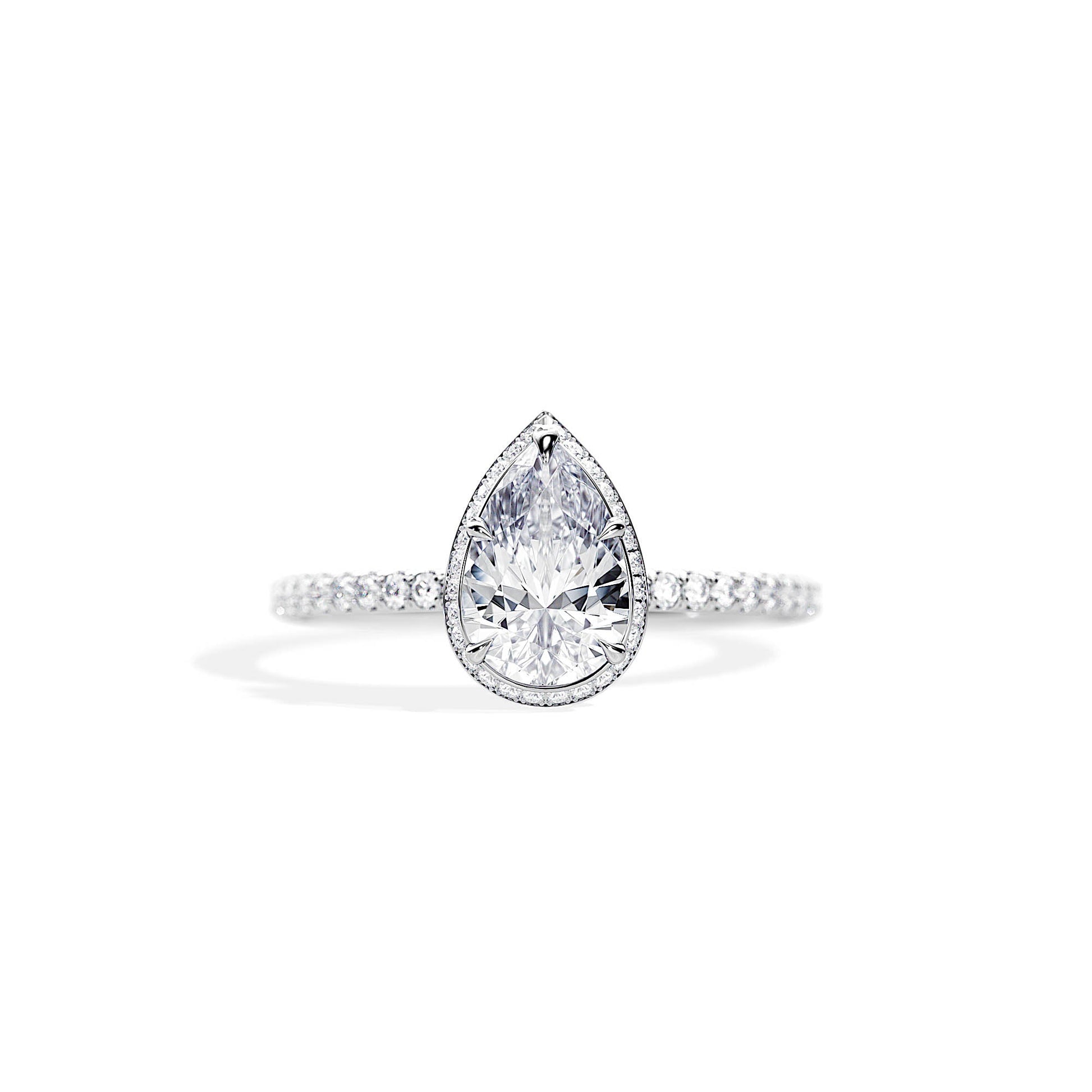 1.50 CT Pear Cut Moissanite Double Hidden Halo & Pave Engagement Ring