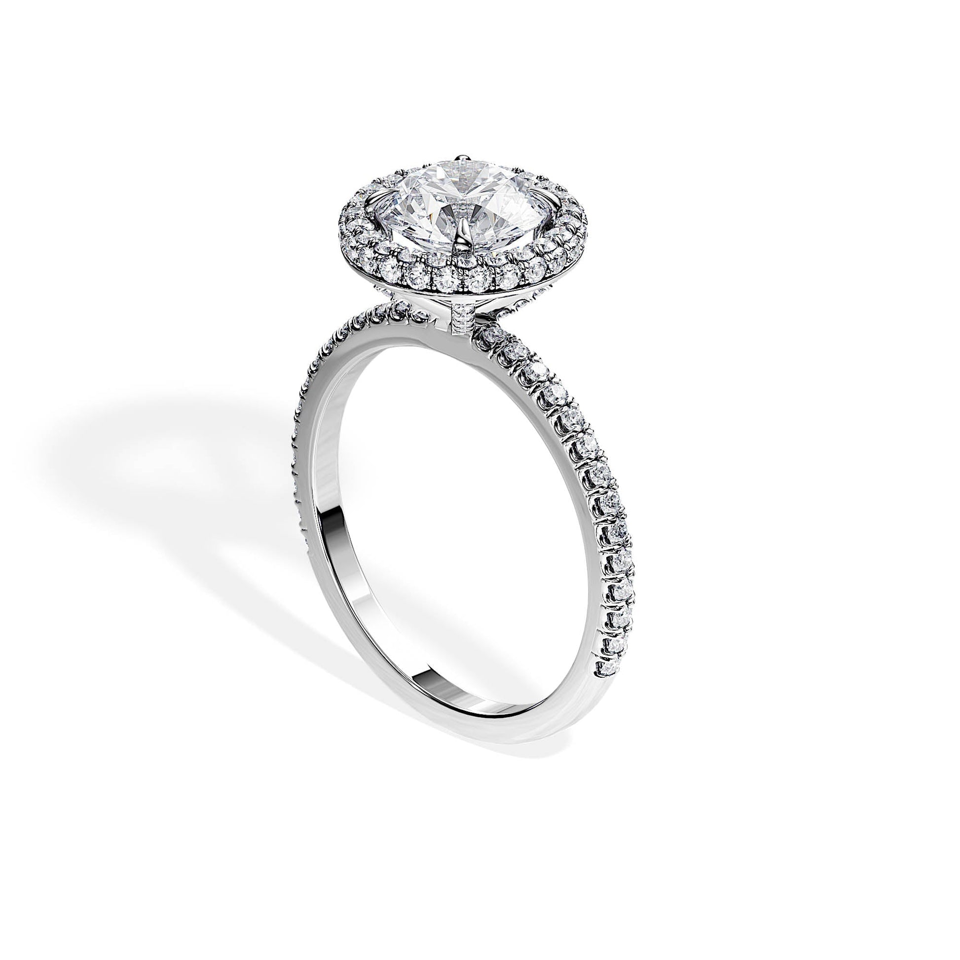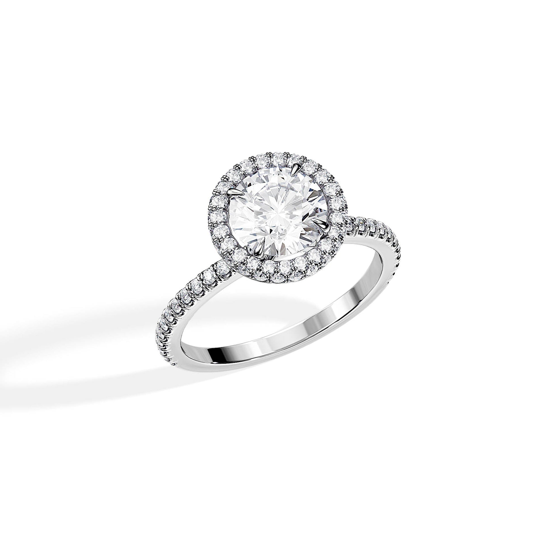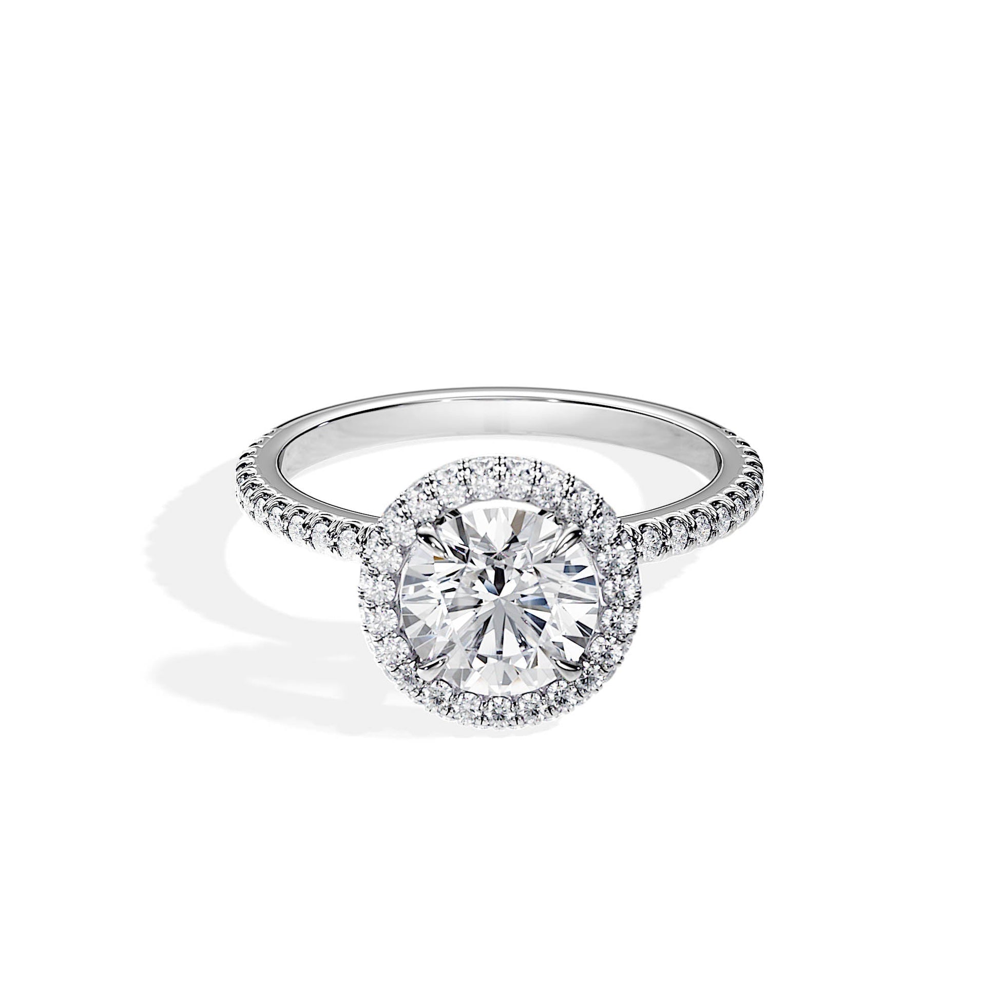 1.50 CT Round Cut Moissanite Double Halo & Pave Engagement Ring