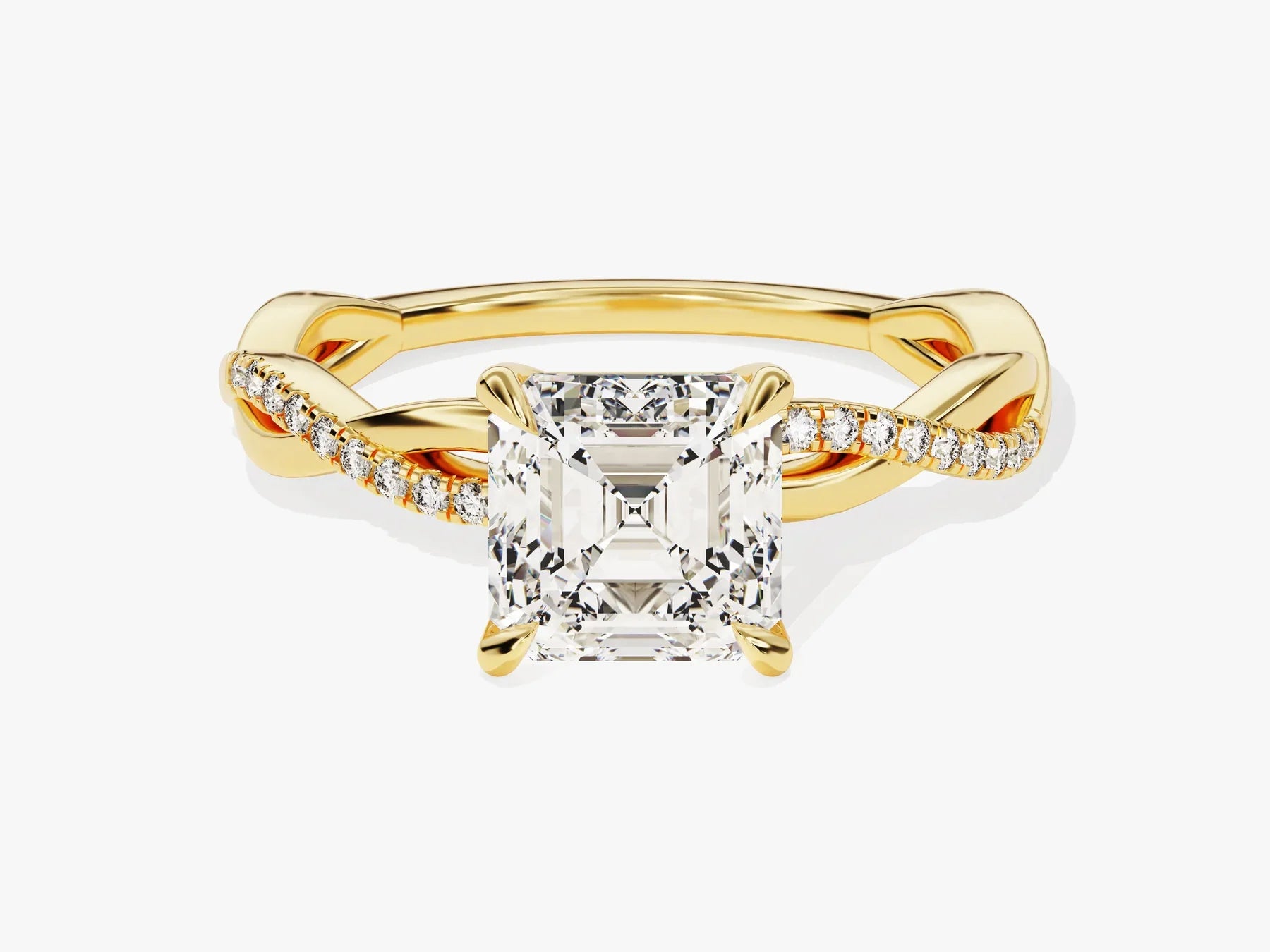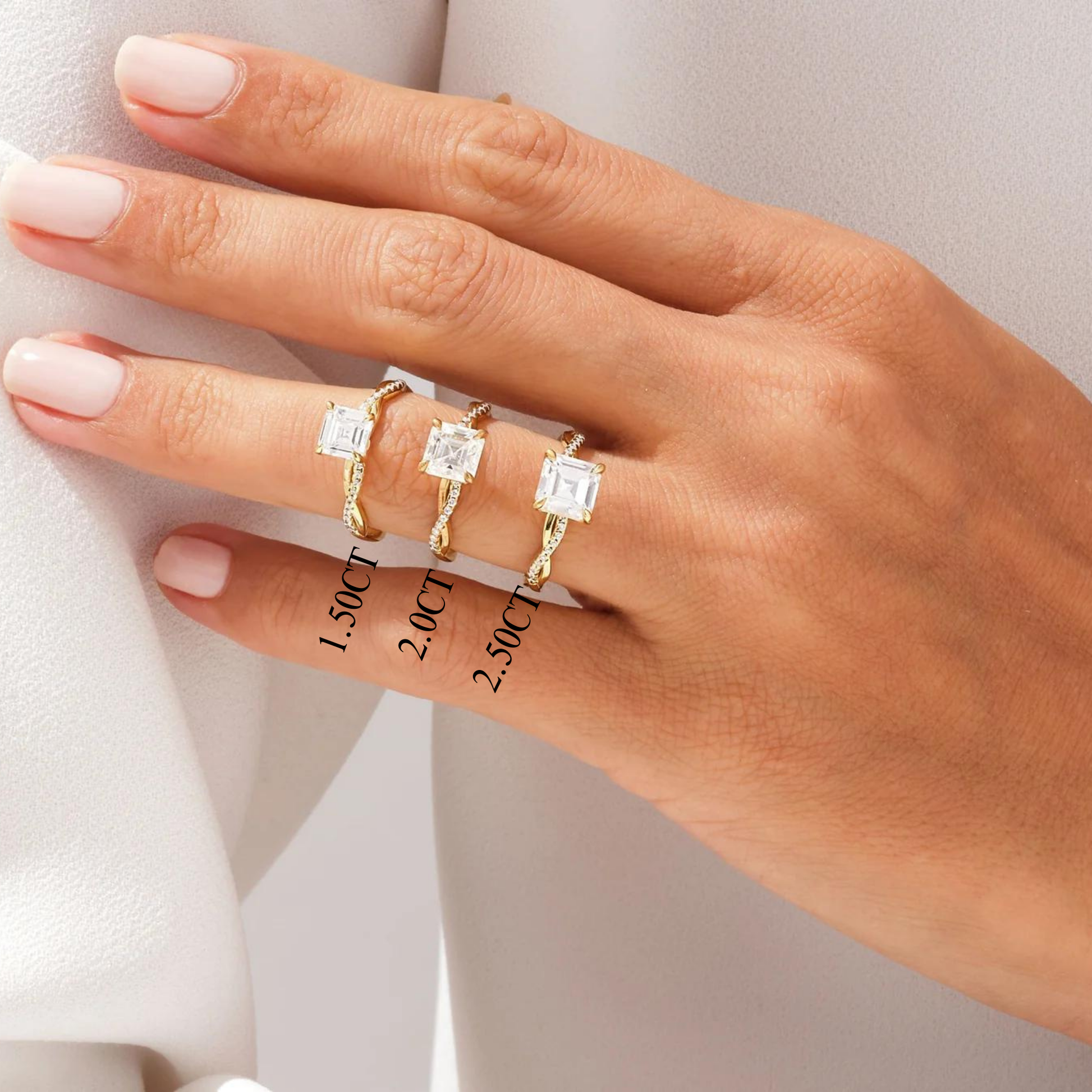 1.50CT Asscher Diamond Twisted Pave Setting Moissanite Engagement Ring