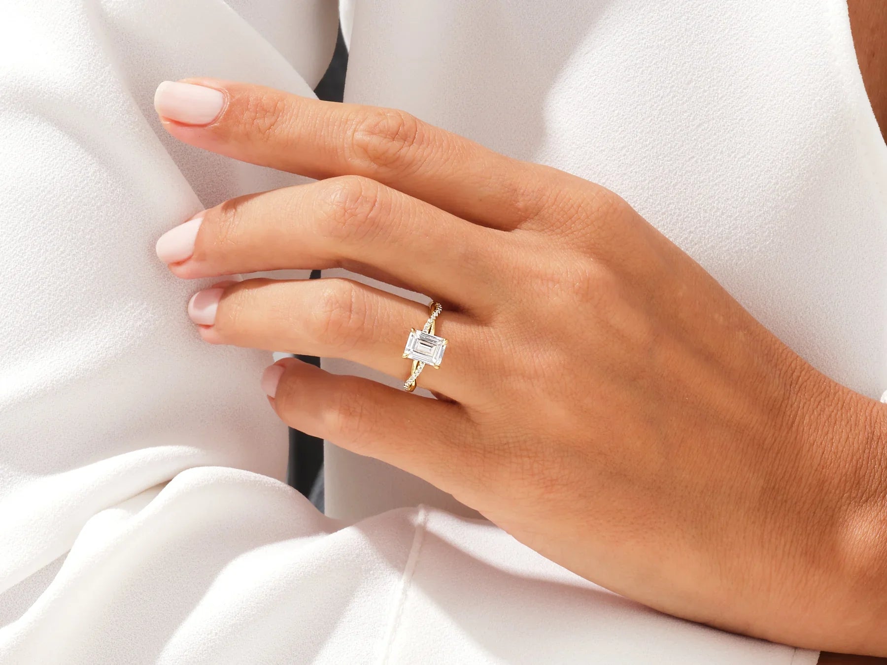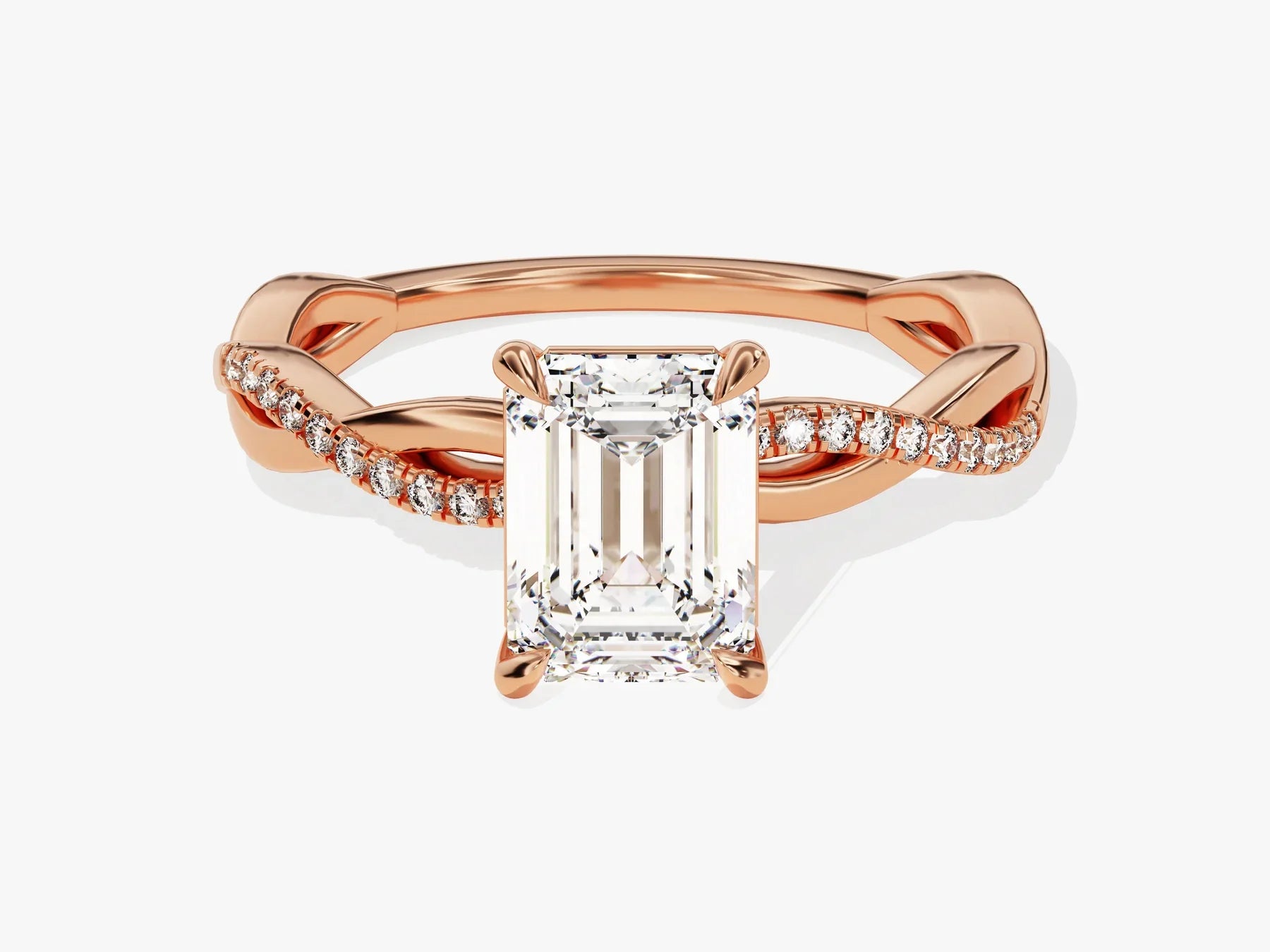 1.50CT Emerald Diamond Twisted Pave Setting Moissanite Engagement Ring
