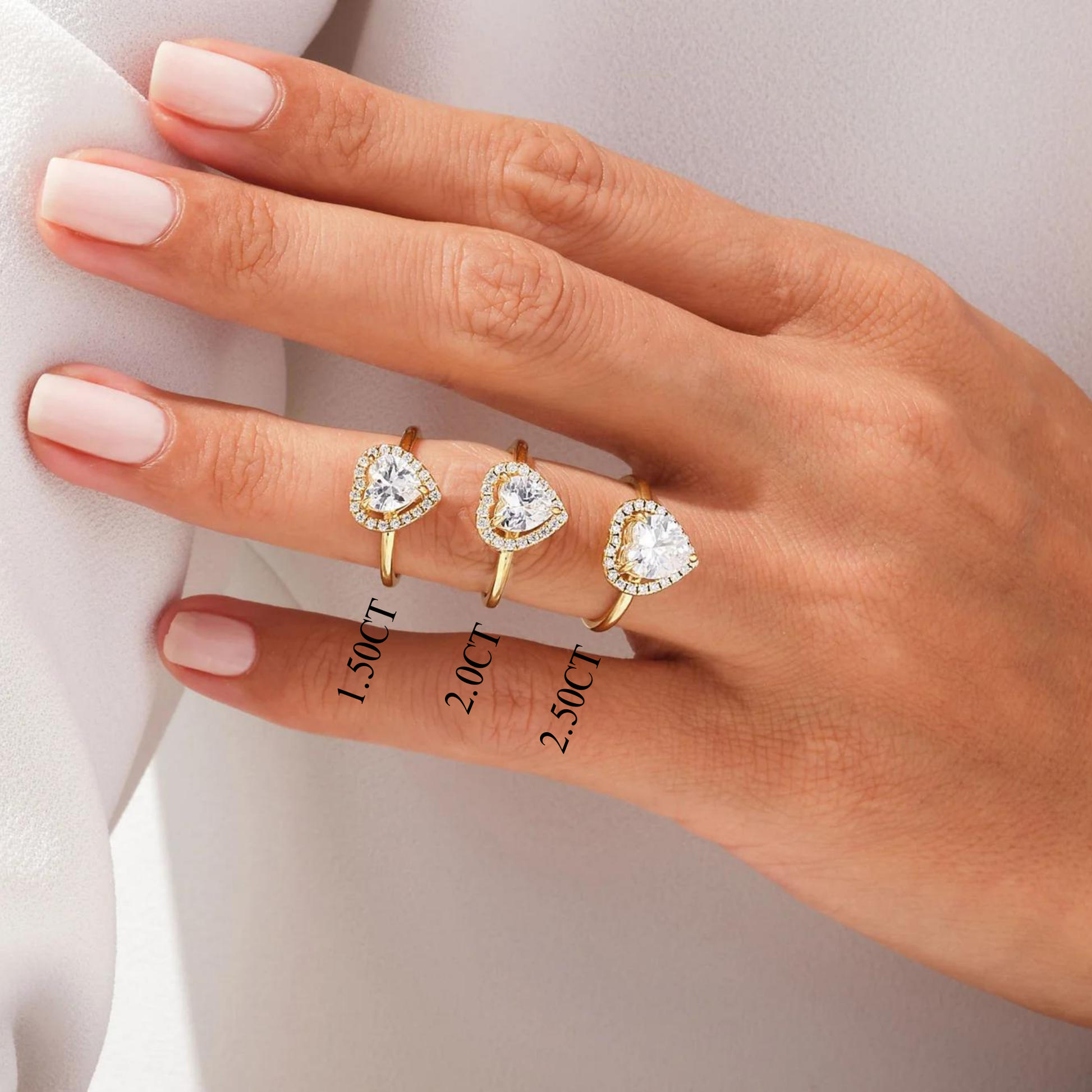 1.50CT Heart Diamond Halo Moissanite Engagement Ring
