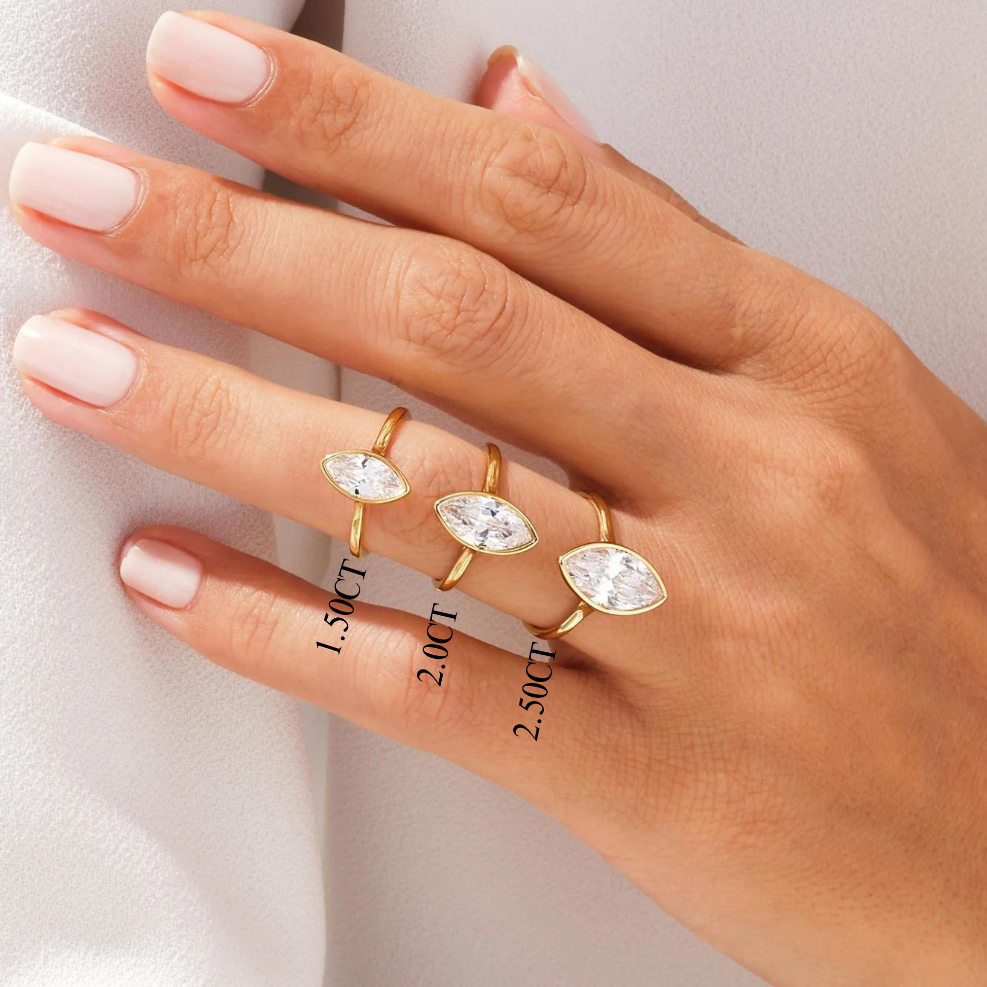 ✥This elegant 1.50CT Marquise Cut Moissanite Engagement Ring features a refined Bezel Setting Solitaire design that highlights the unique allure of the marquise shape. The marquise cut moissanite is known for its graceful. elongated silhouette. which maximizes brilliance and creates a stunning sparkle that captivates attention. The modern bezel setting securely frames the center stone. offering a sleek and contemporary look while enhancing its overall beauty. Ideal for those seeking a ring that exudes sophistication and individuality. this engagement ring is a luxurious yet affordable alternative to traditional diamonds. symbolizing a love that is both timeless and extraordinary.