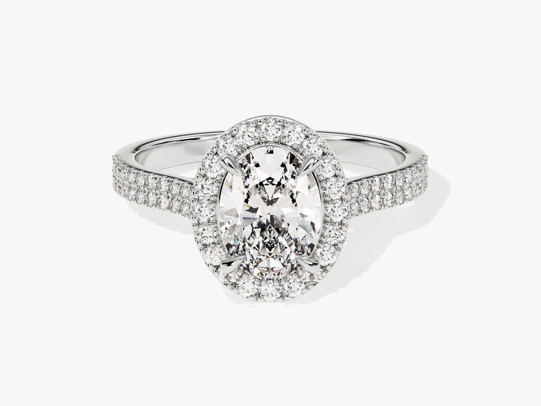 1.50CT Oval Diamond Double Shank Halo Moissanite Engagement Ring