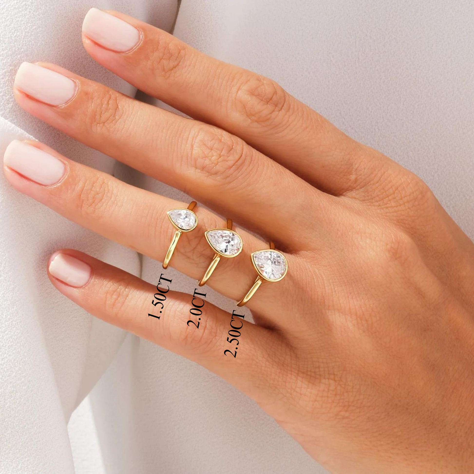 1.50CT Pear Cut Bezel Setting Solitaire Moissanite Engagement Ring