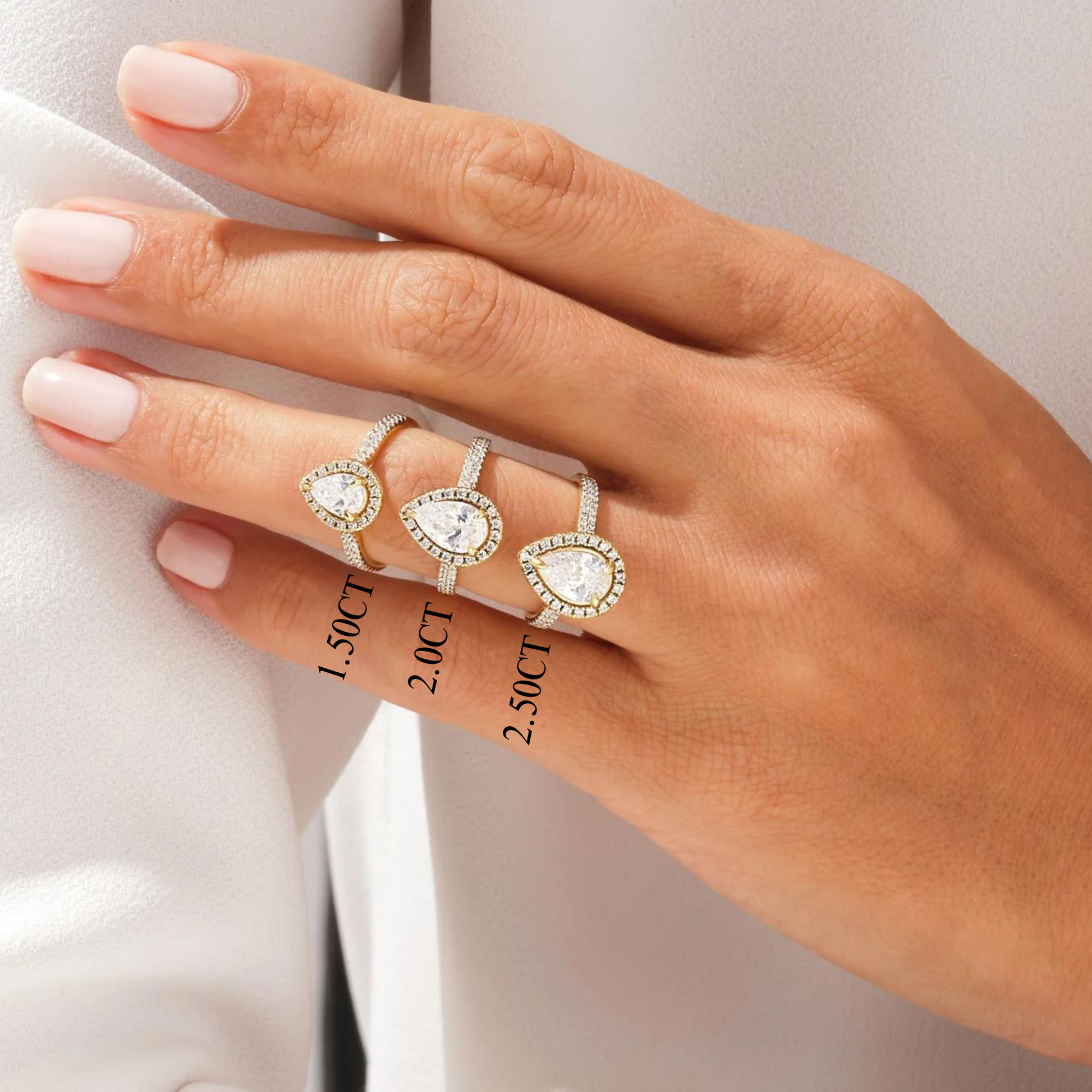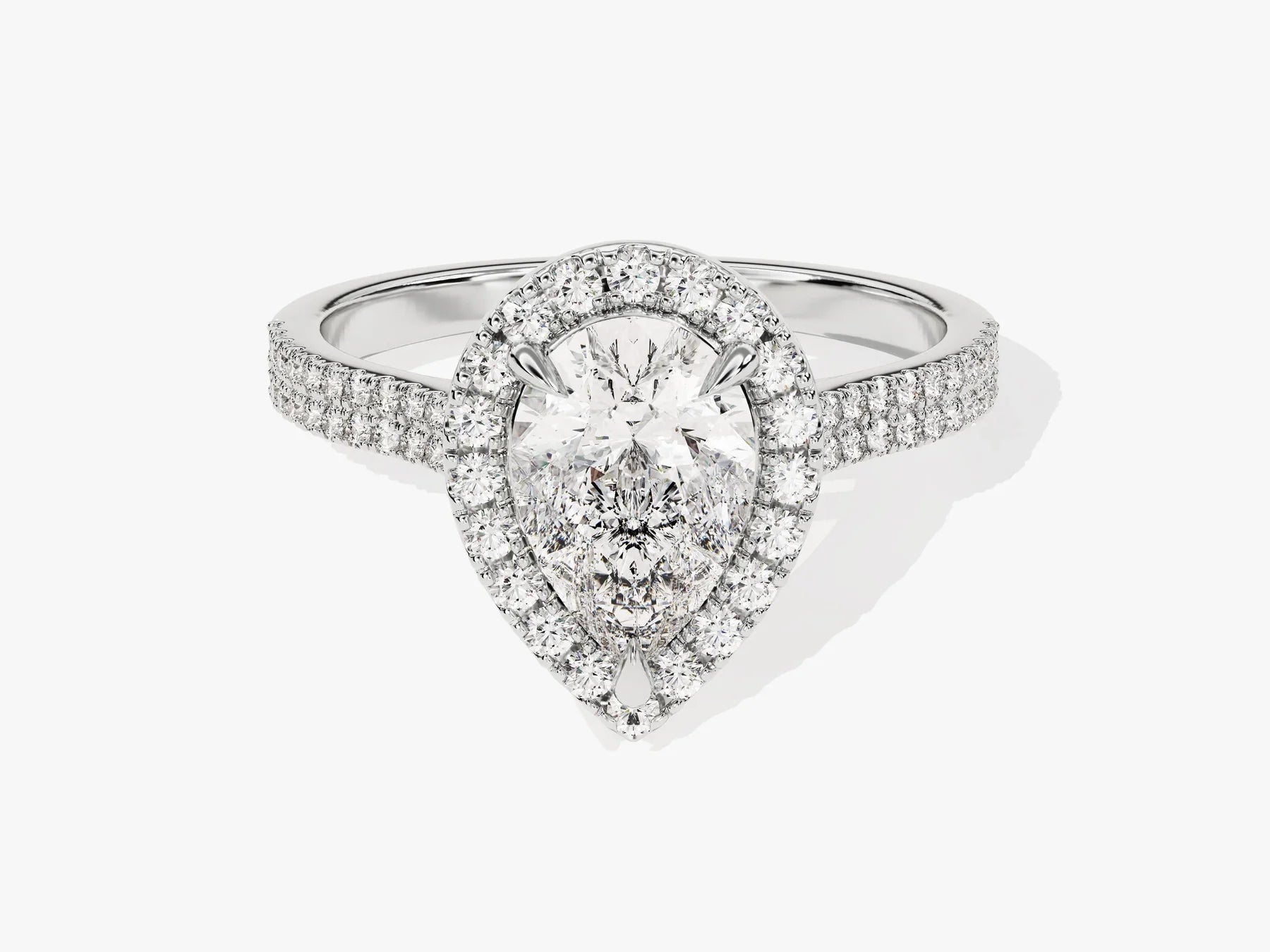 1.50CT Pear Diamond Double Shank Halo Moissanite Engagement Ring