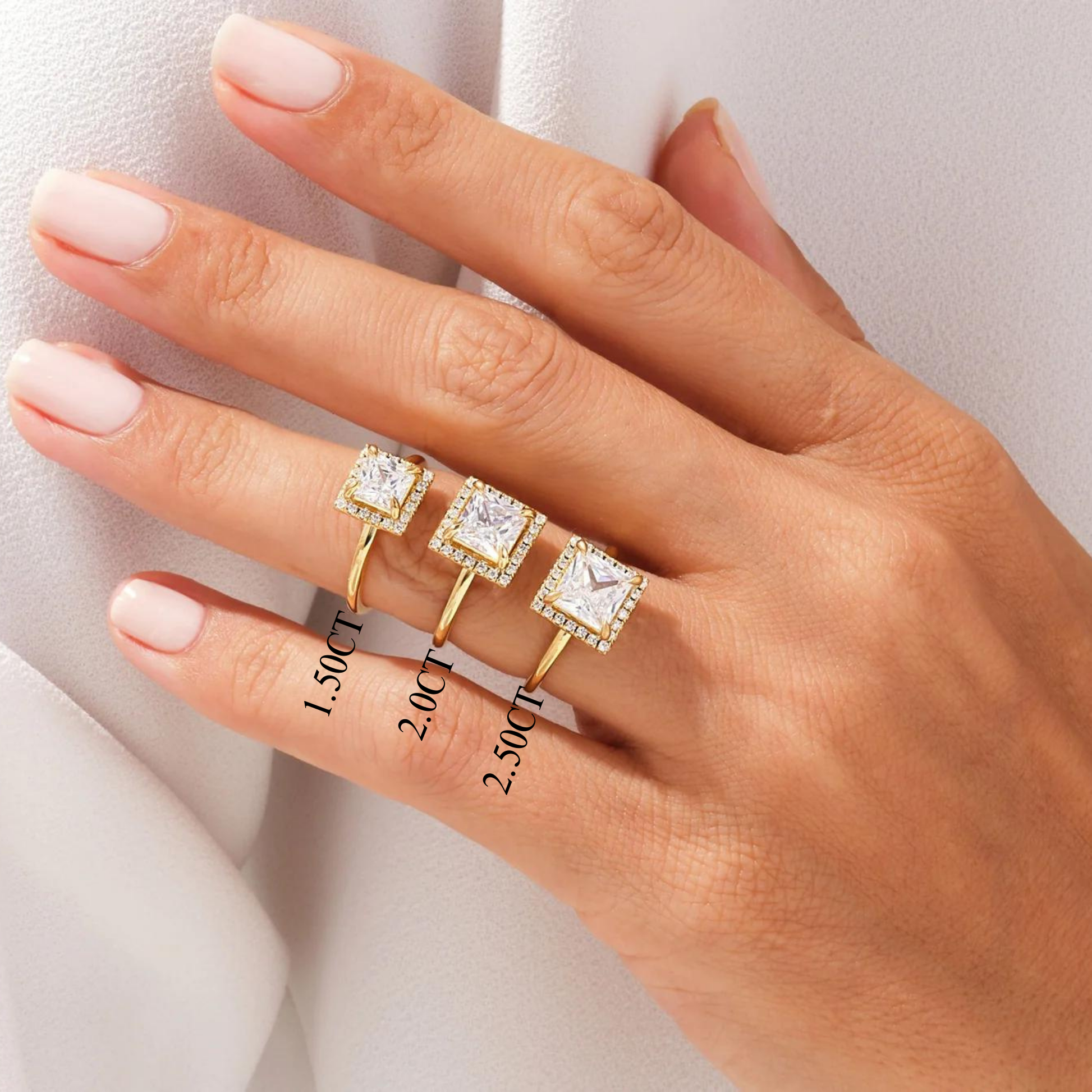 1.50CT Princess Diamond Halo Moissanite Engagement Ring
