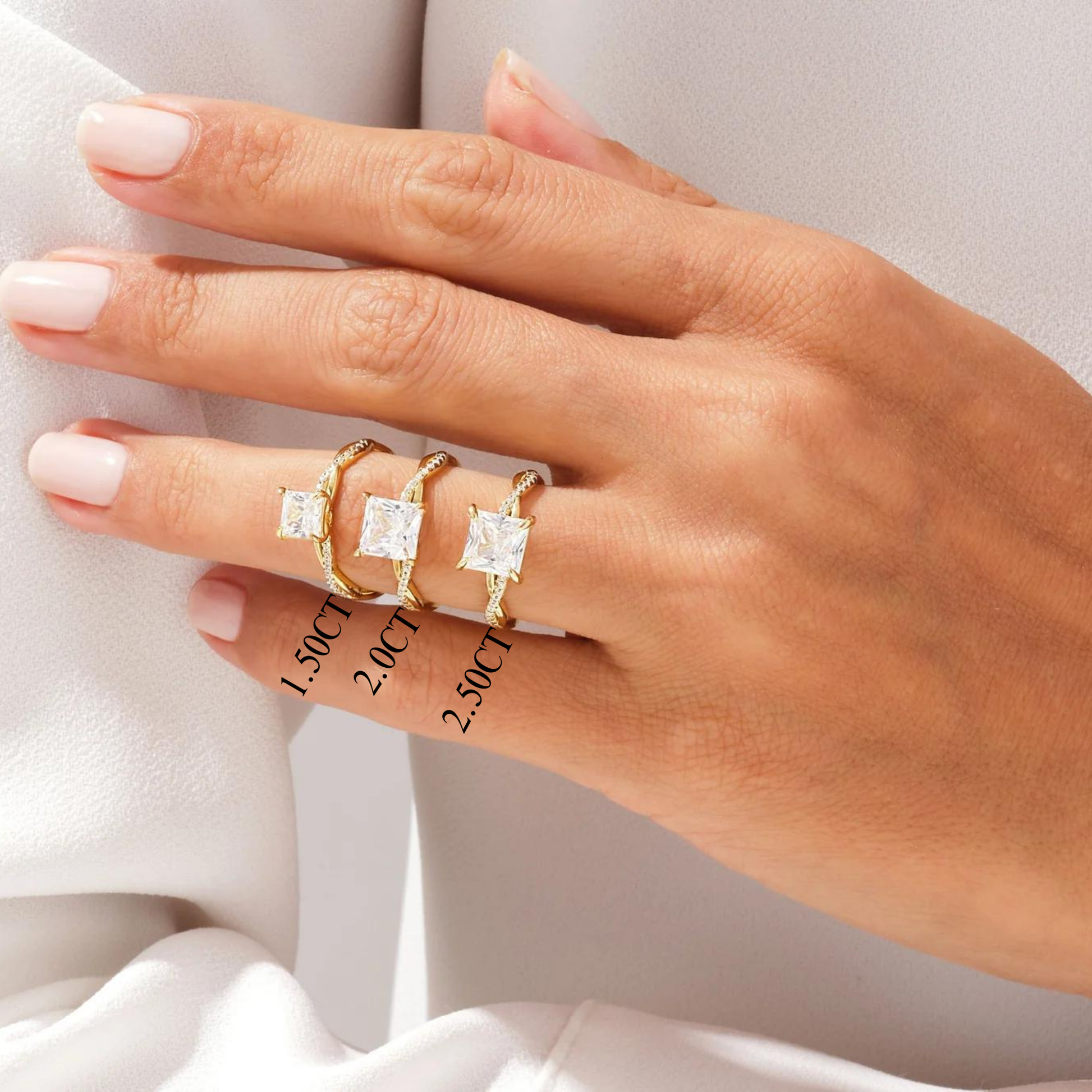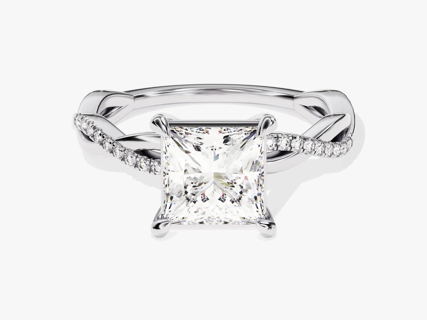 1.50CT Princess Diamond Twisted Pave Setting Moissanite Engagement Ring
