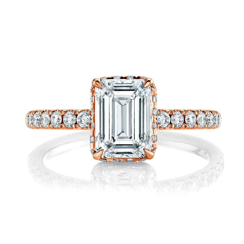 1.51ct Emerald Cut Moissanite Diamond Hidden Halo Engagement Ring