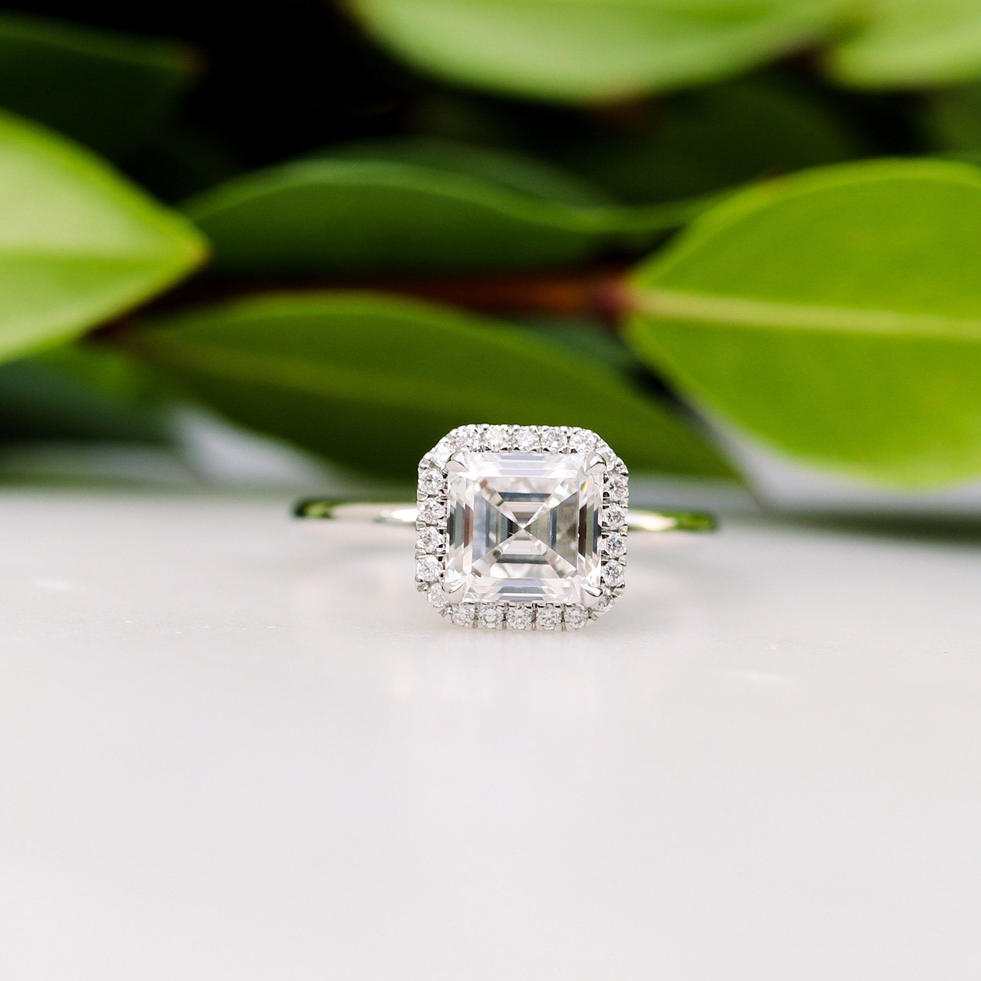 1.50CT Asscher Cut Moissanite Halo Diamond Engagement Ring