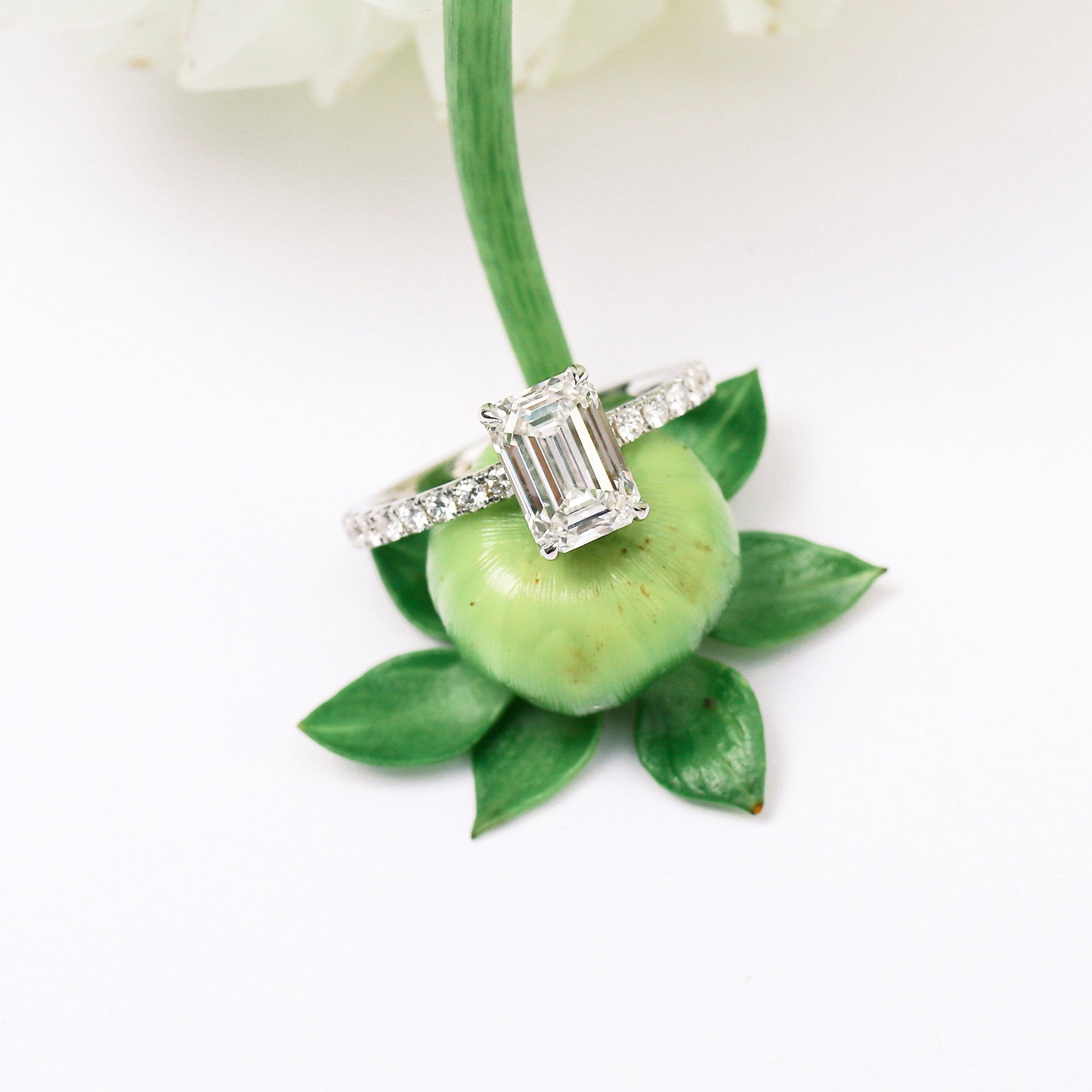 1.50CT Emerald Cut Moissanite Petite Pave Diamond Engagement Ring