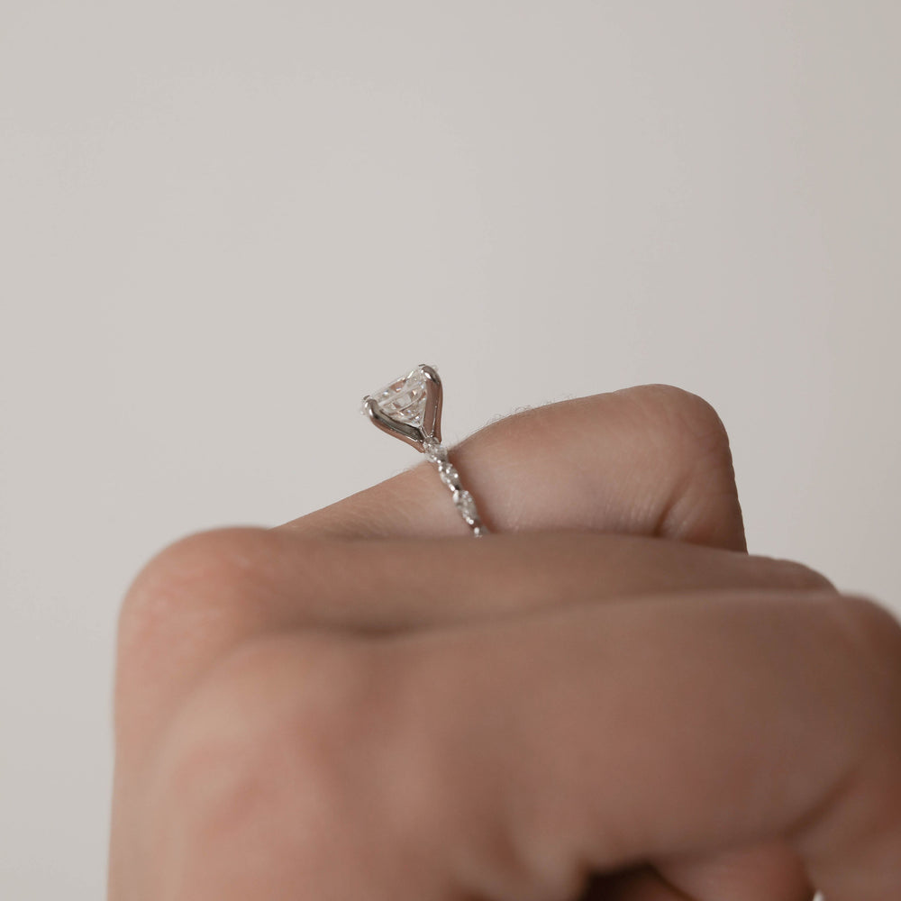✥ Experience timeless elegance with our 1.70CT Oval Moissanite Pave Diamond Engagement Ring. Featuring a dazzling oval moissanite center stone. this ring is adorned with petite round and marquise diamonds along the band. adding extra sparkle and sophistication. Set in a lustrous metal band. this exquisite ring captures the essence of classic romance and modern glamour. With its intricate design and exceptional craftsmanship. it's sure to be cherished as a symbol of your eternal love and commitment.