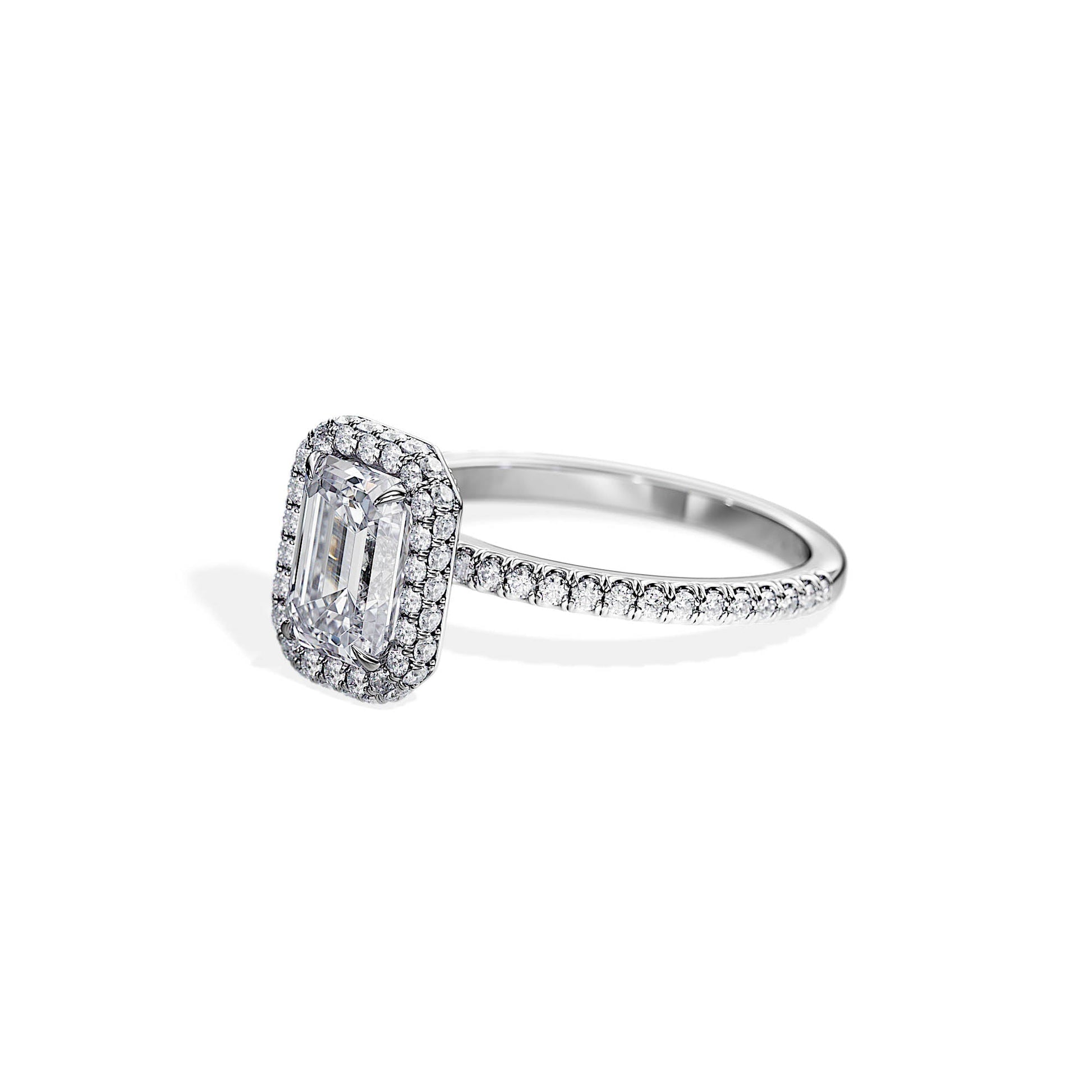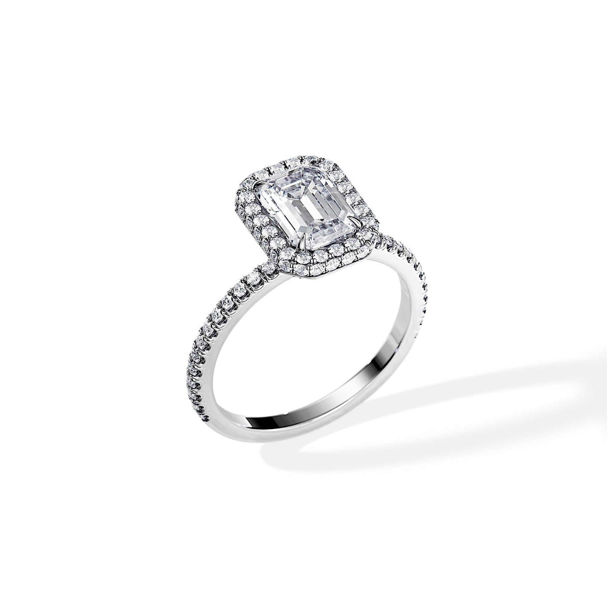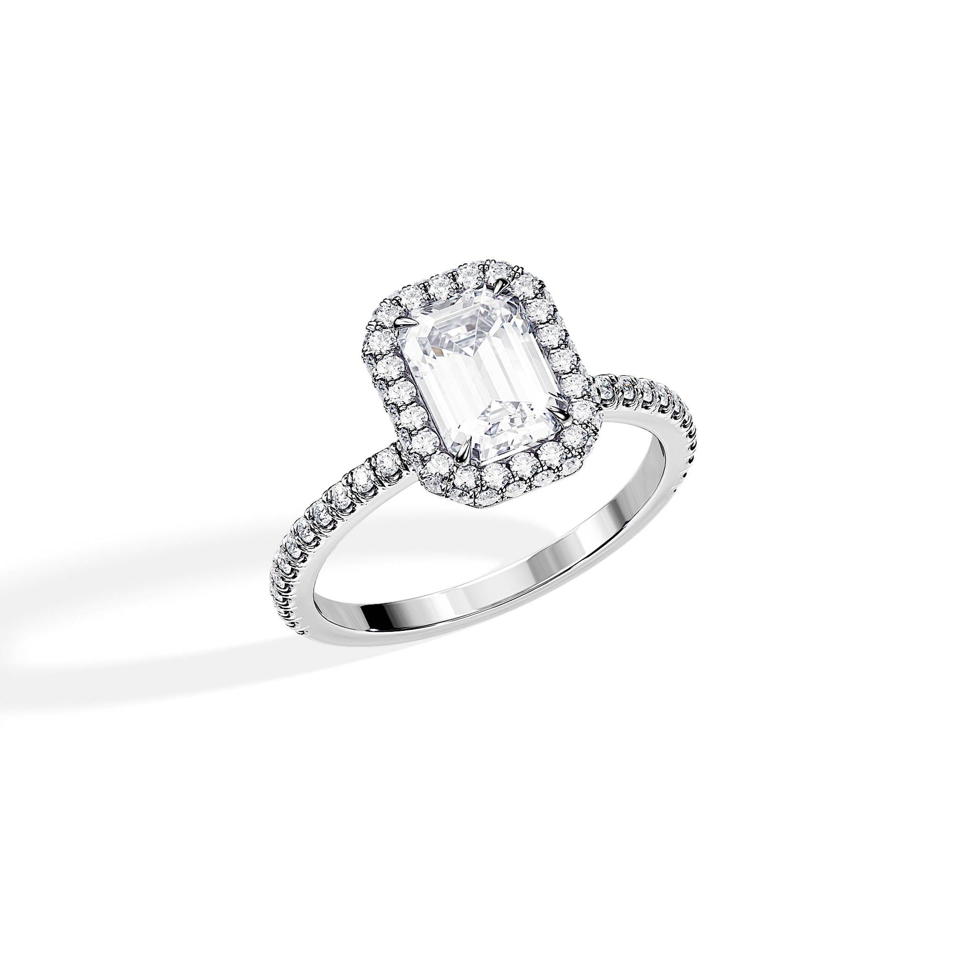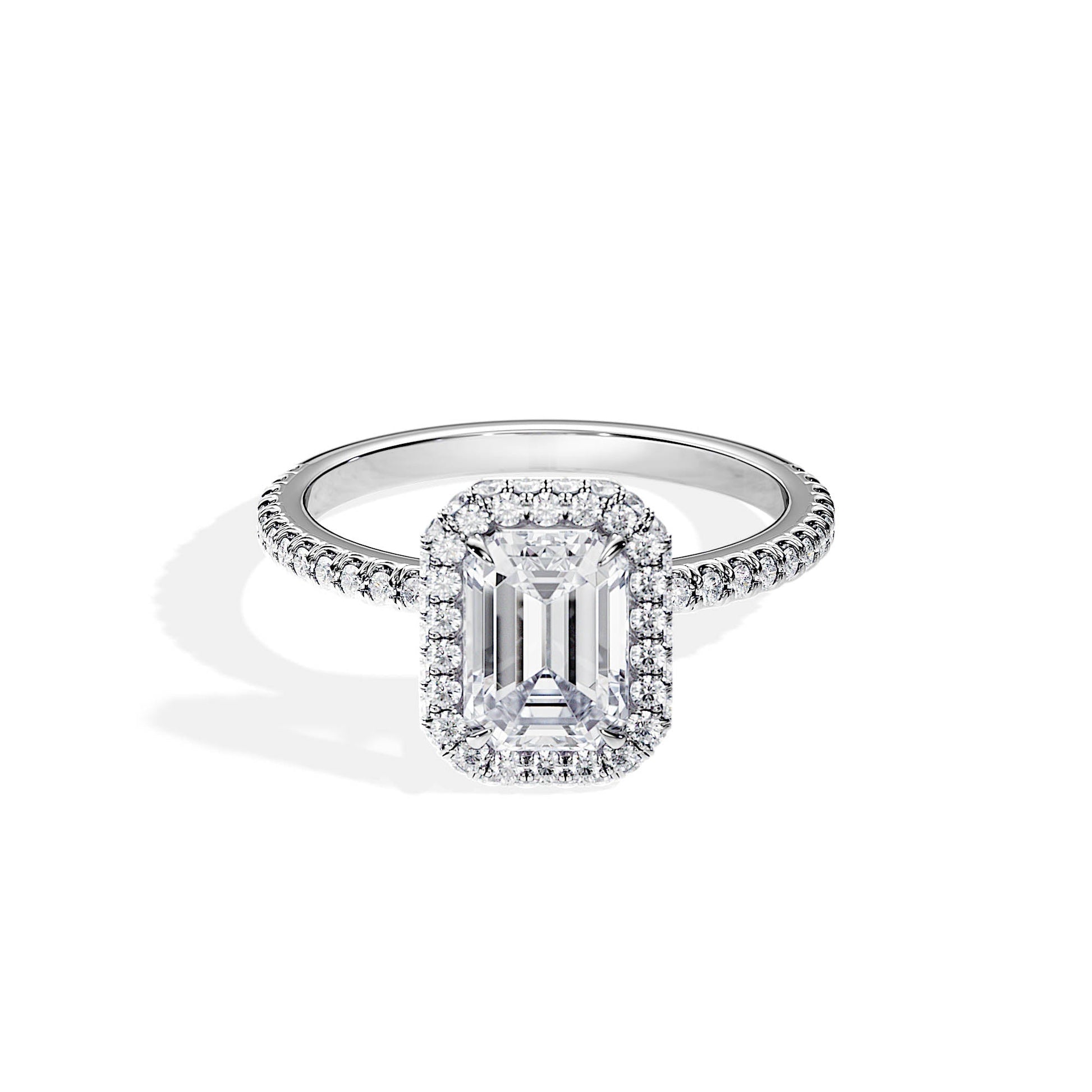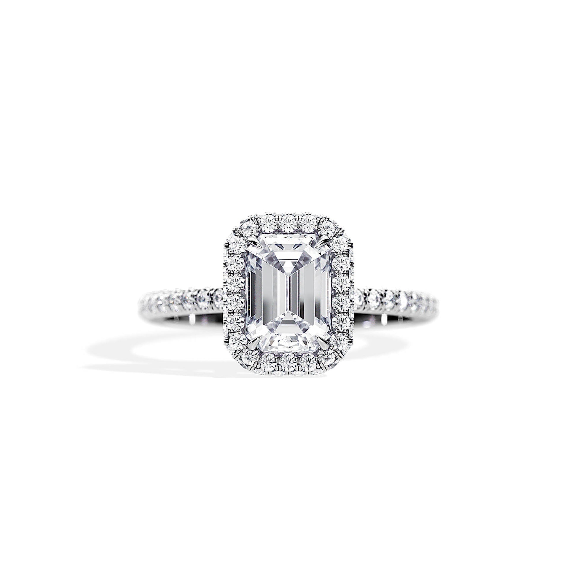 1.75 CT Emerald Cut Moissanite Double Halo & Pave Engagement Ring