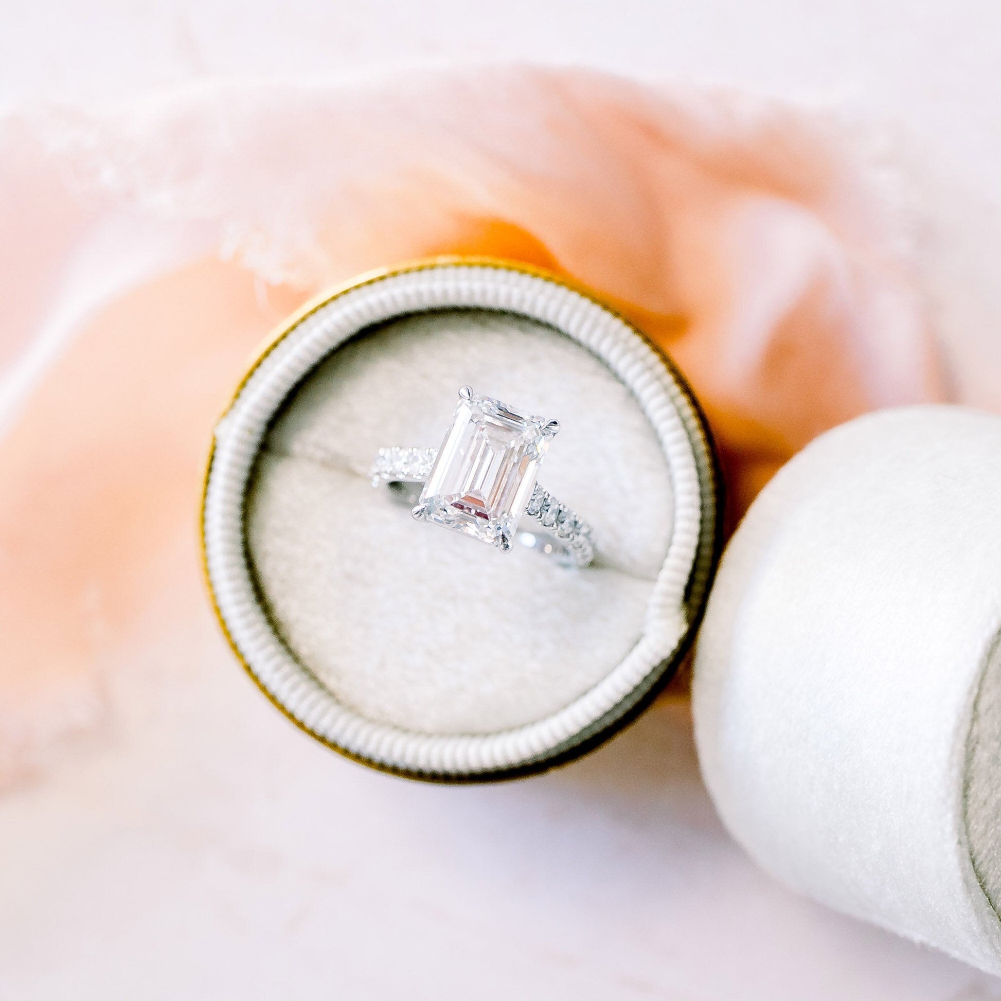 1.75CT Emerald Cut Moissanite Cathedral Pave Diamond Engagement Ring