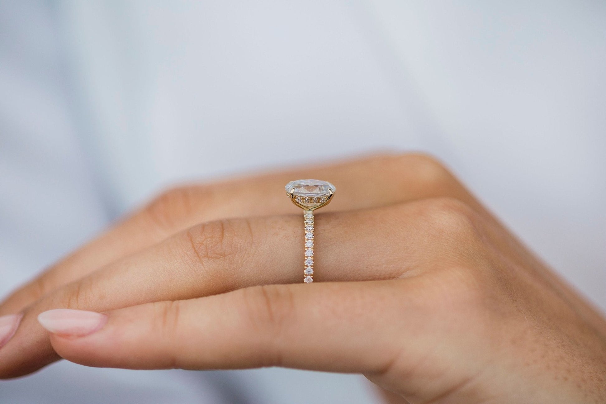 1.85CT Oval Cut Moissanite Hidden Halo Engagement Ring