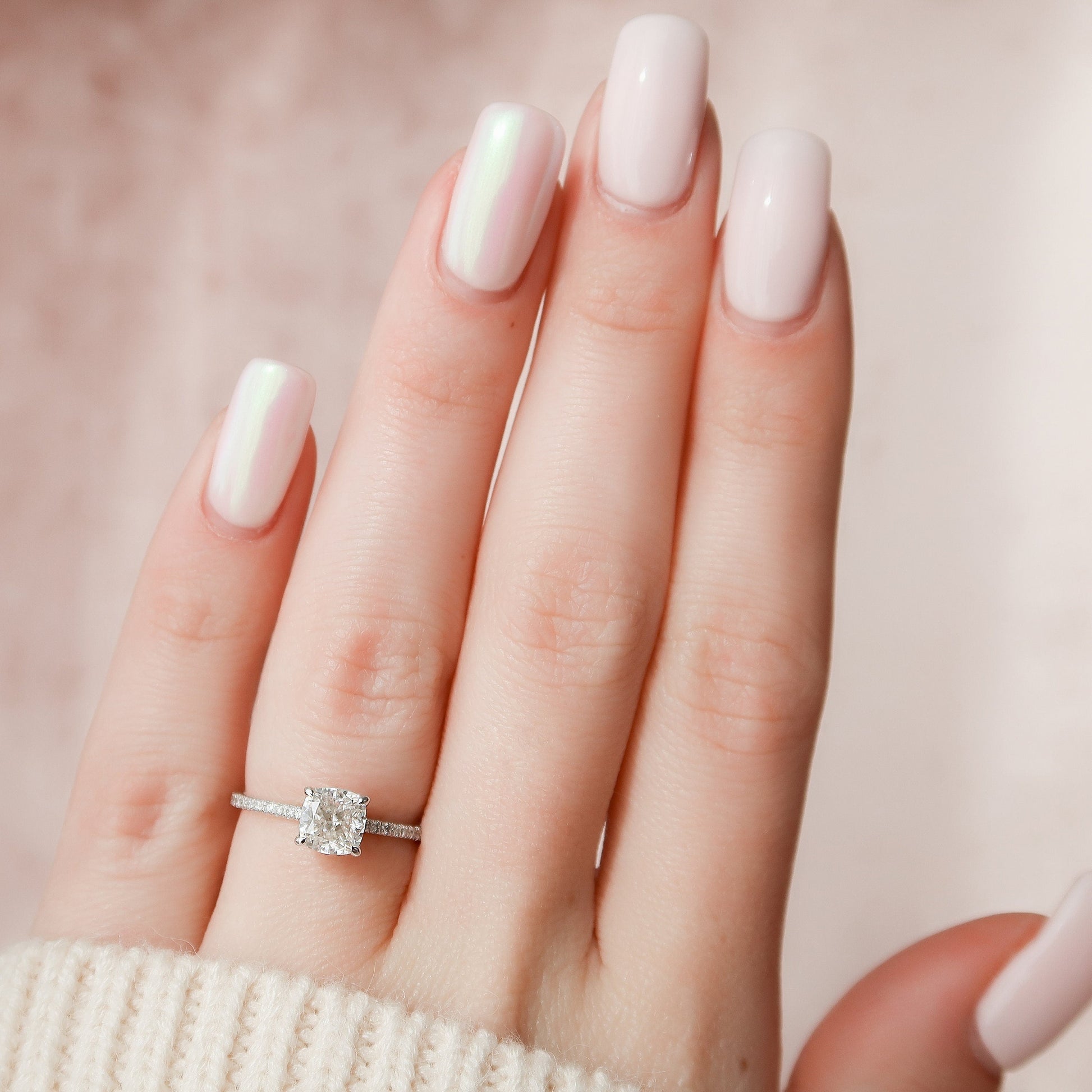 1.0CT Cushion Cut Moissanite Halo Engagement Ring