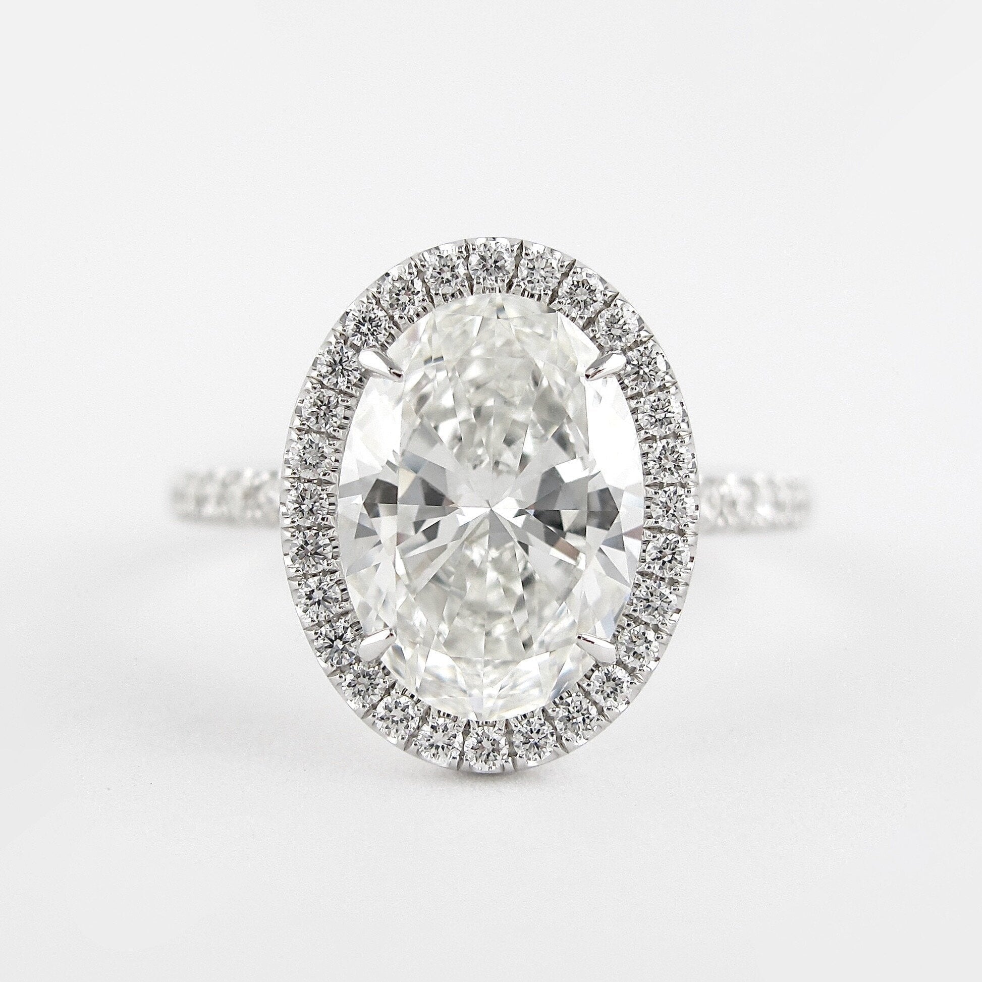 1.91CT Elongated Oval Cut Halo Four Prongs Moissanite Diamond Engagement Ring