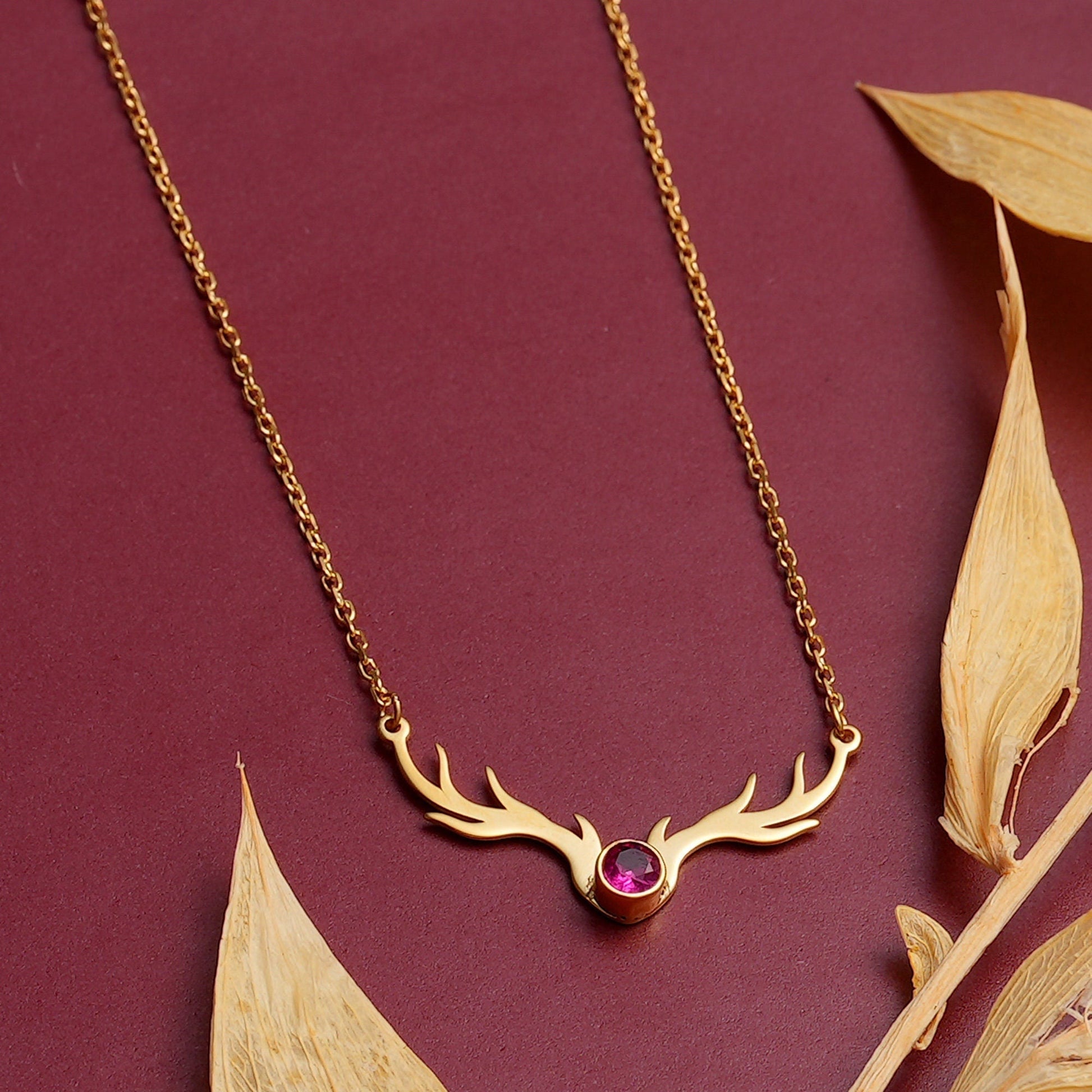 14K Gold Deer Antler Necklace Pendant Gift for Women