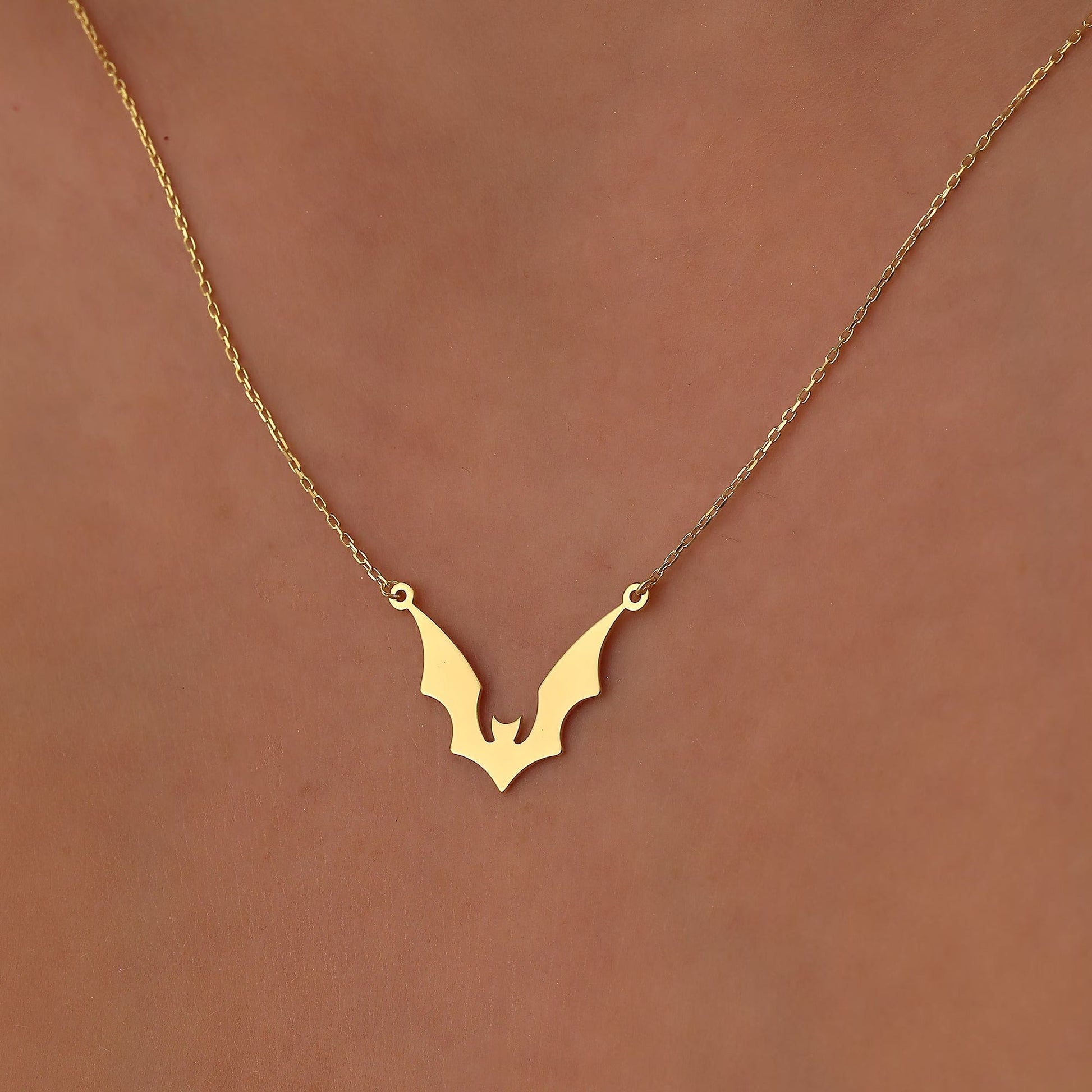 14K Gold Halloween Dainty Bat Necklace Gift For Her
