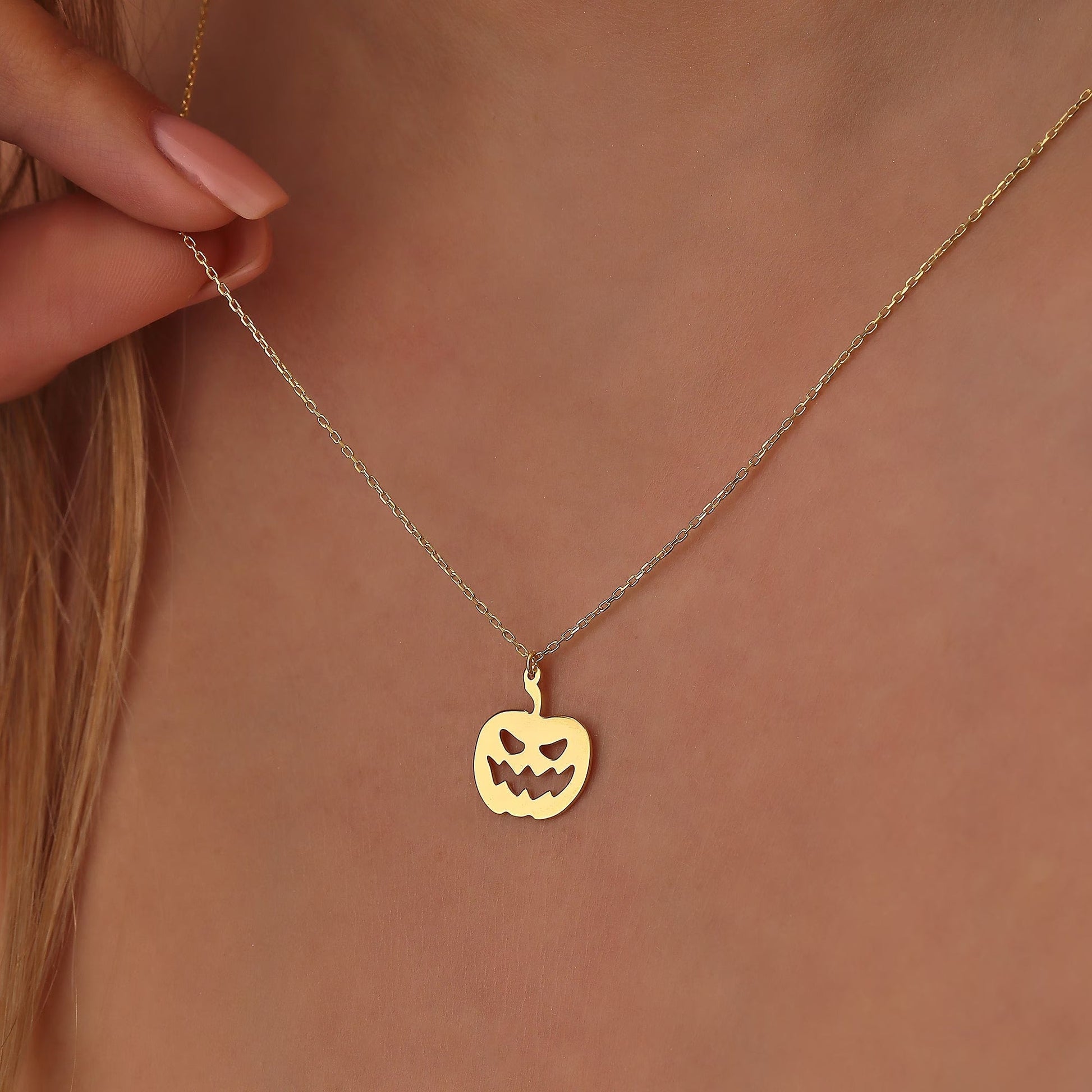 14K Gold Halloween Pumpkin Necklace For Halloween Jewelry Gift