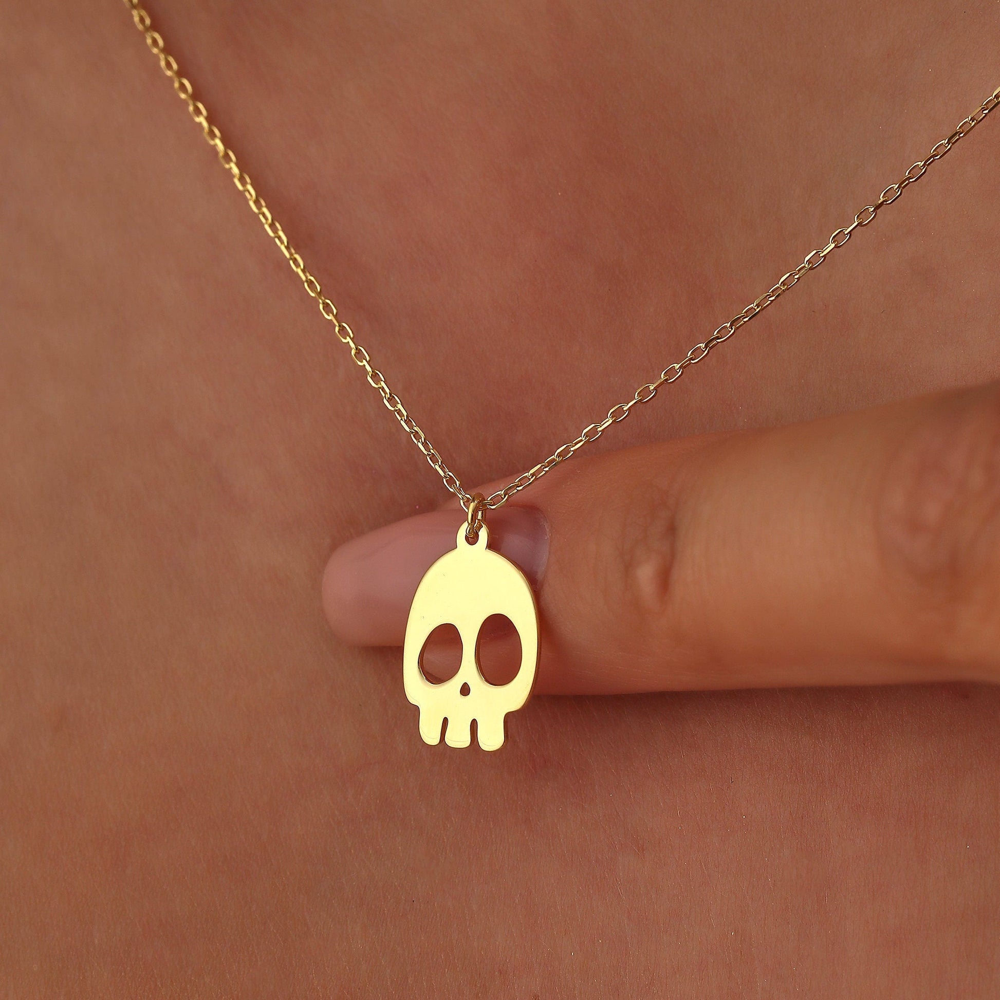 14K Gold Halloween Skull Ghost Necklace Gift for Women