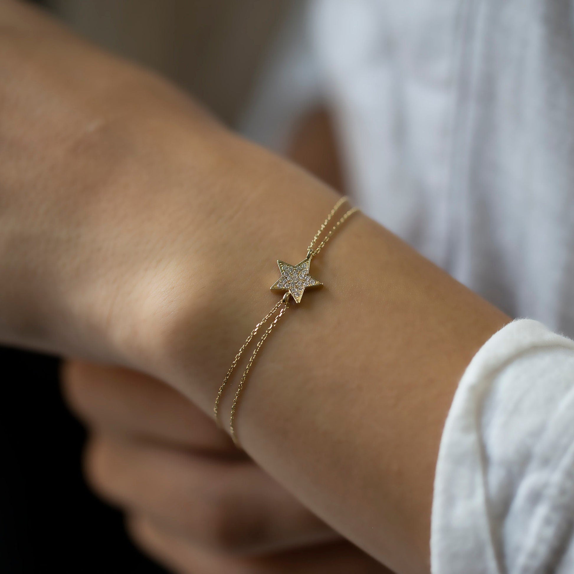 14K Gold Round Cut Diamond Star Bracelet for Women