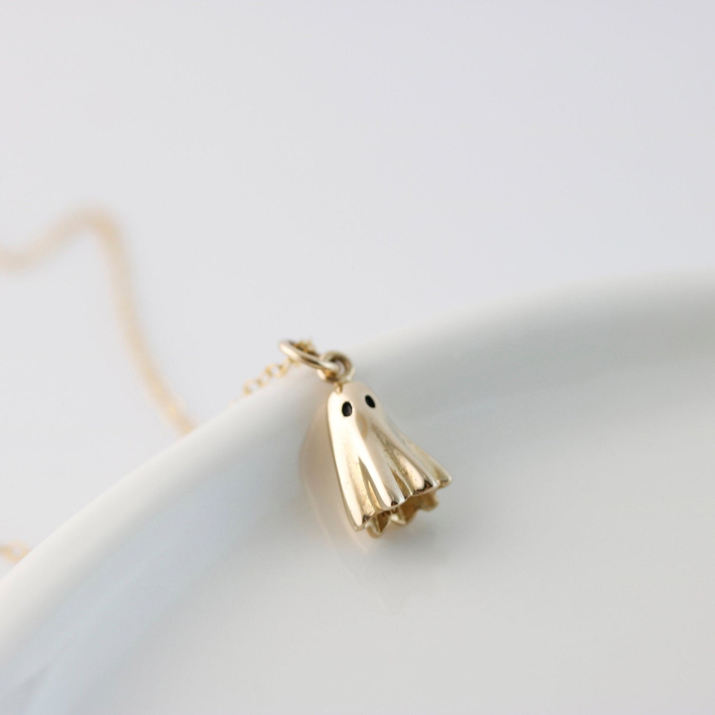 14K Solid Gold Ghost Pendant Necklace for Halloween Gift