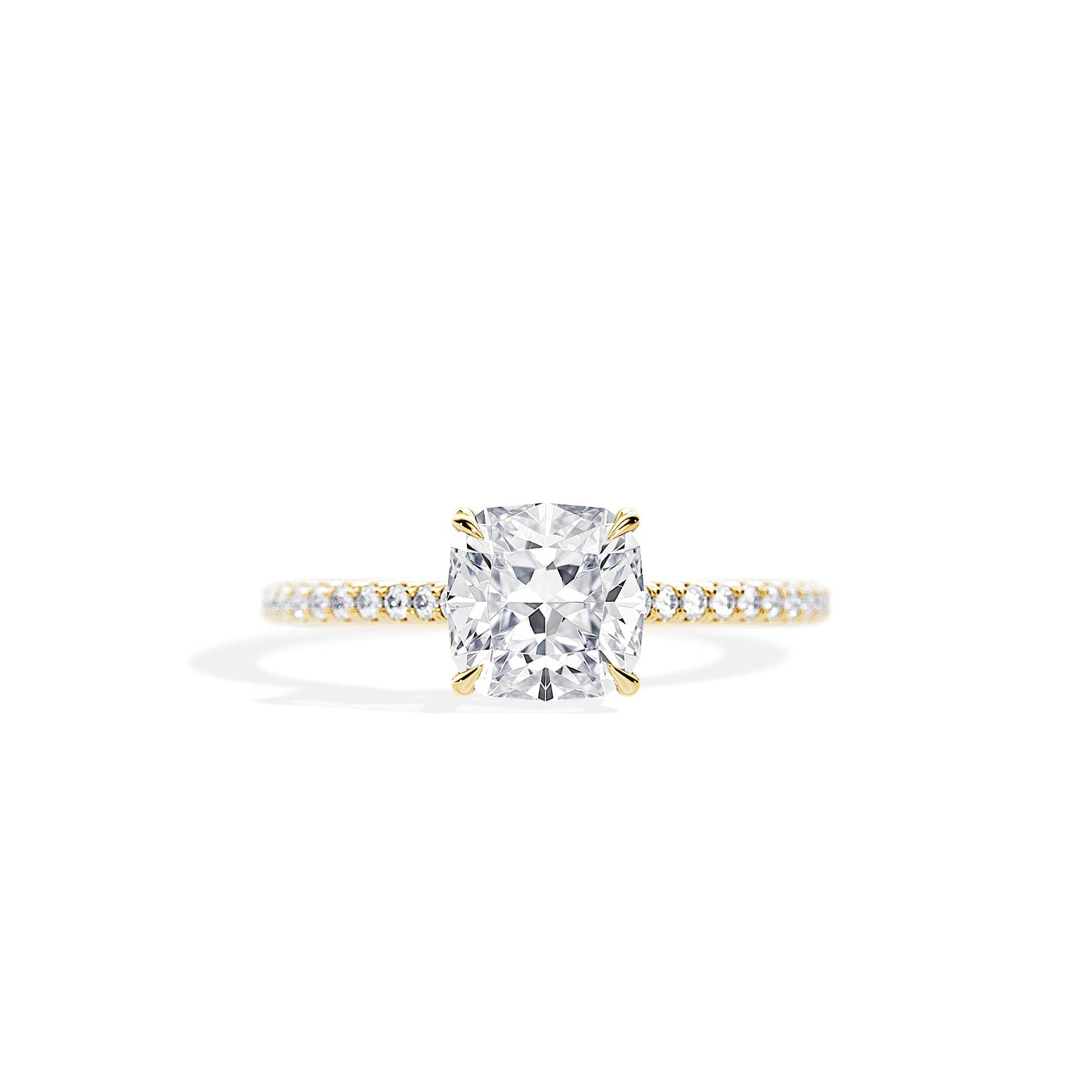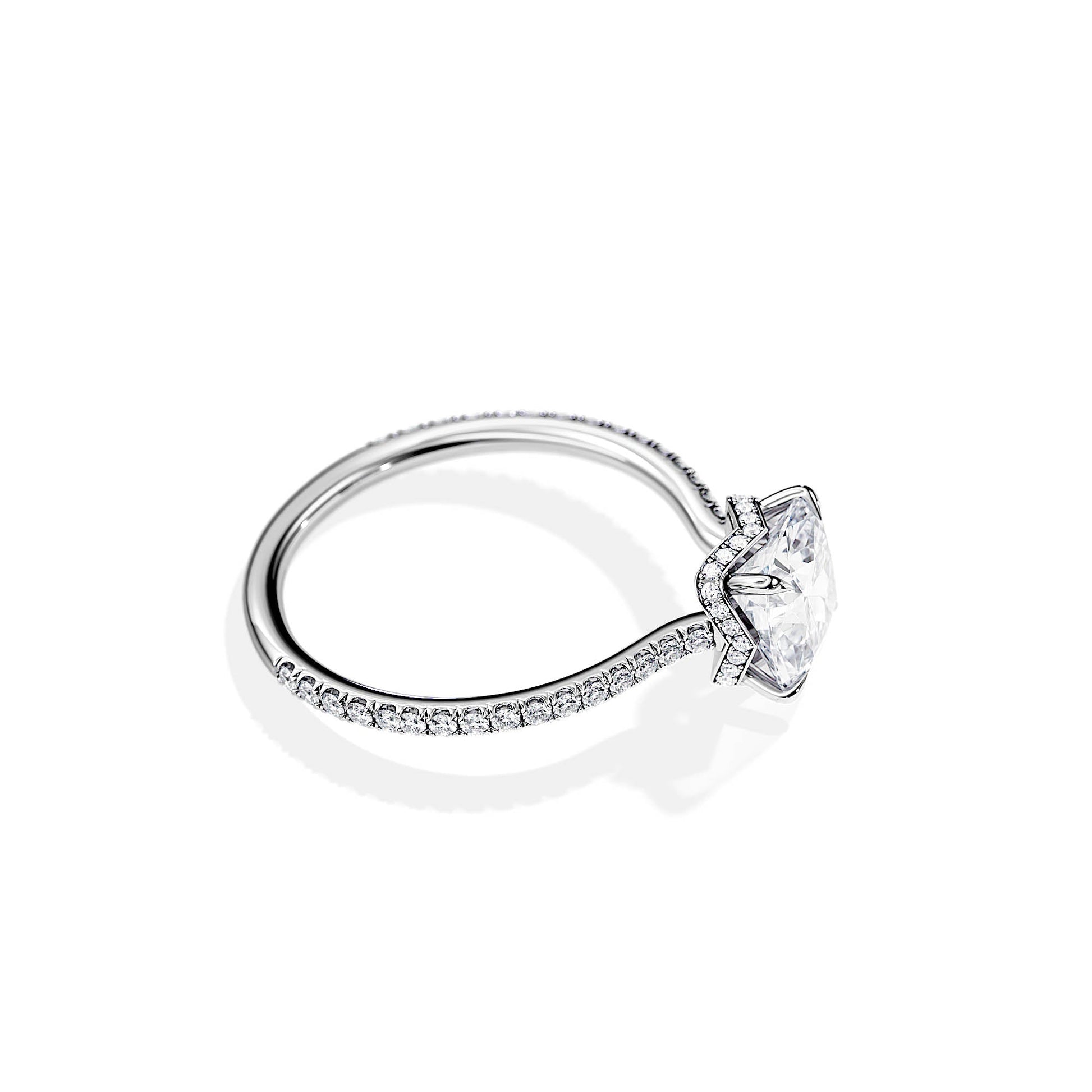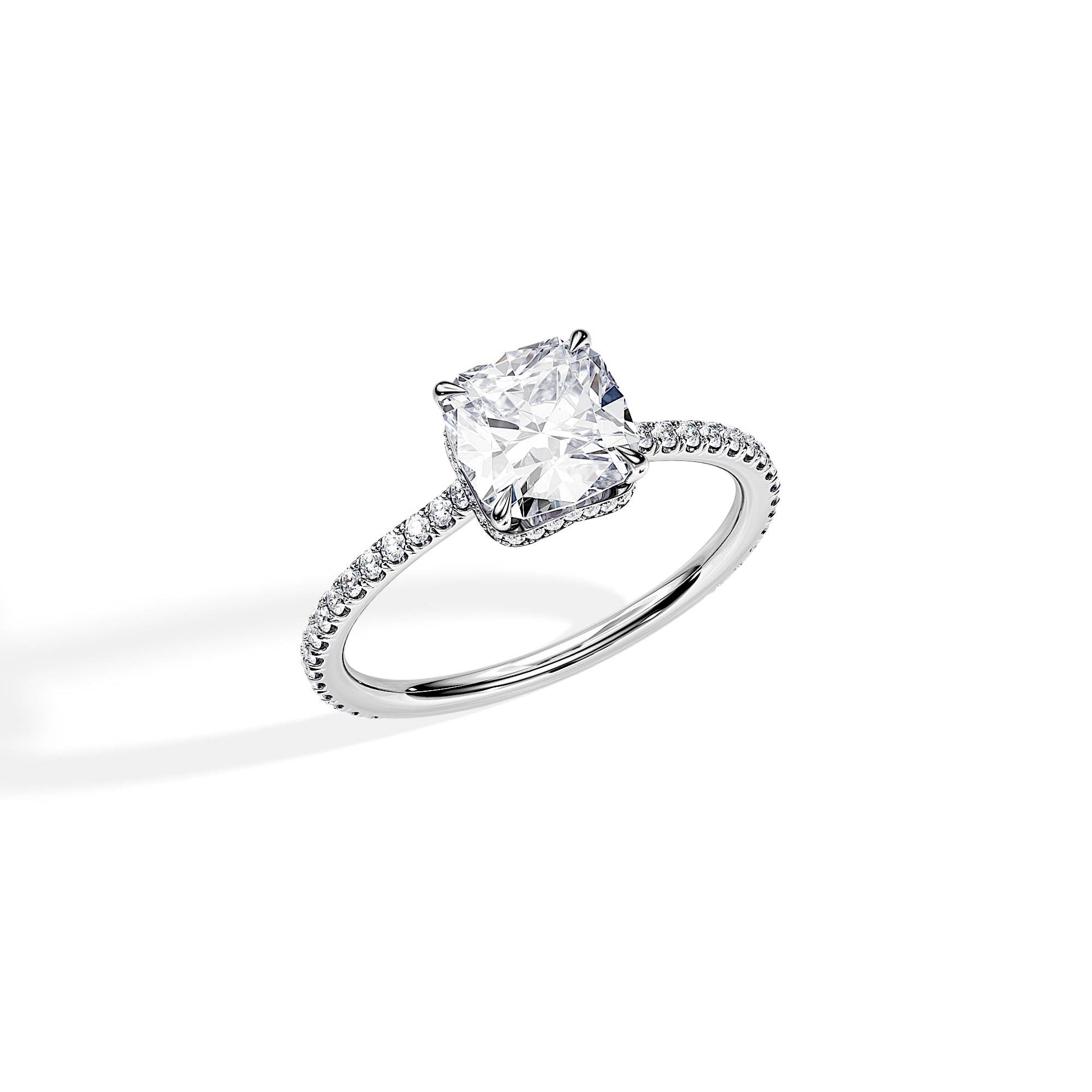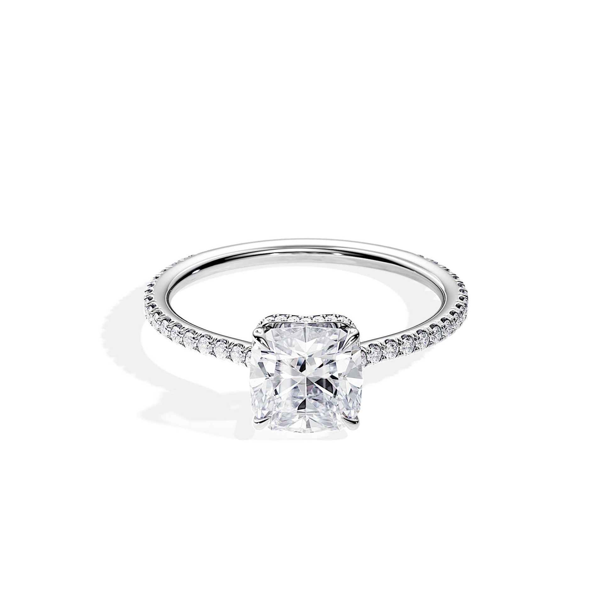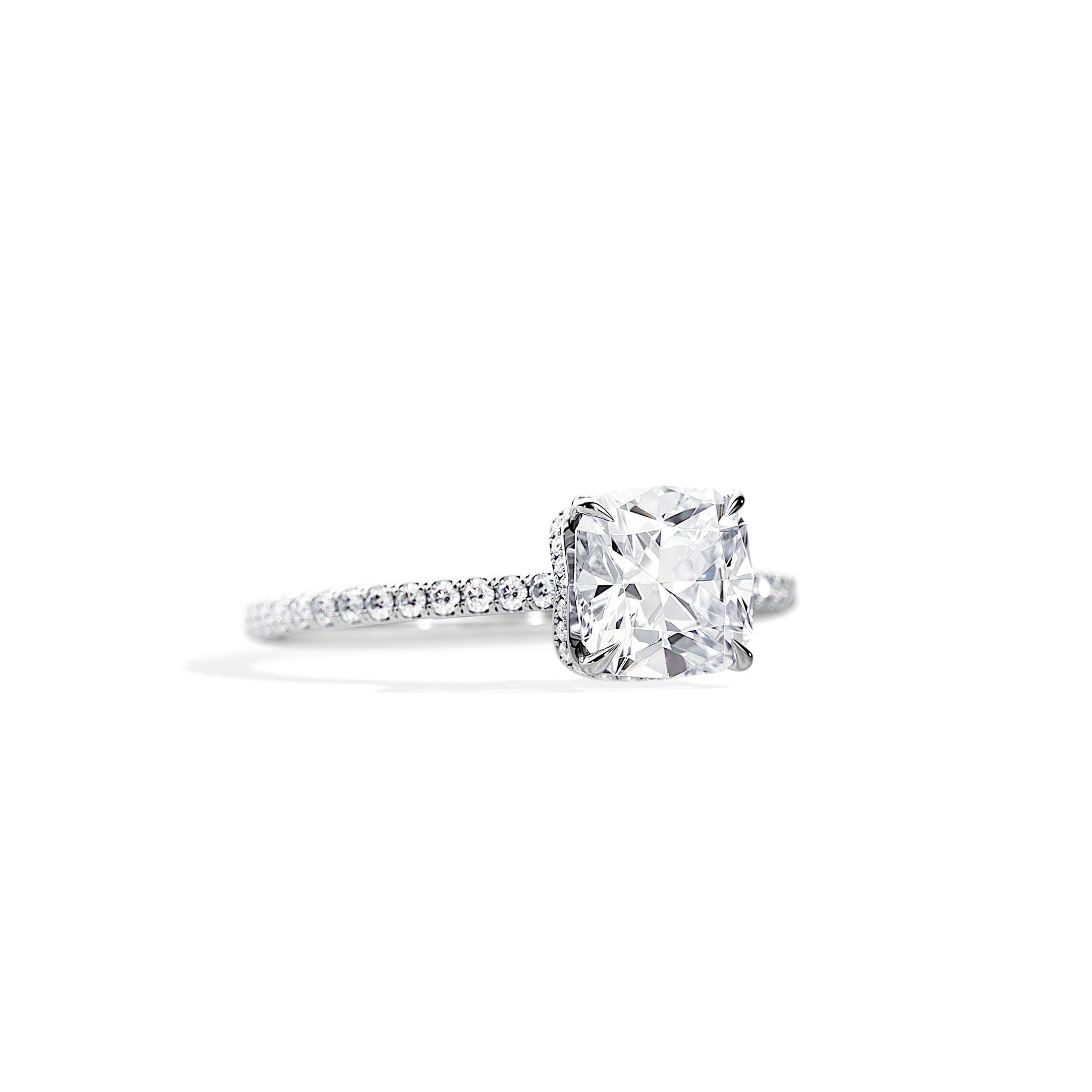 2.0 CT Cushion Cut Moissanite Twisted Hidden Halo & Pave Engagement Ring