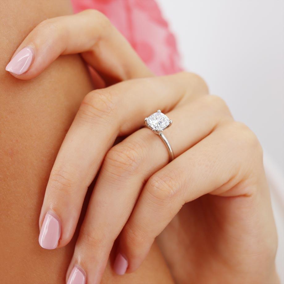 2.0 CT Cushion Shaped Moissanite Solitaire Engagement Ring