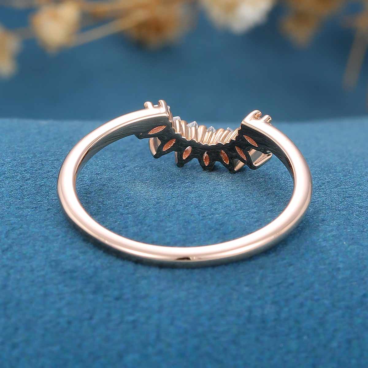 2.0 CT Marquise Shaped Moissanite Curved Wedding Band