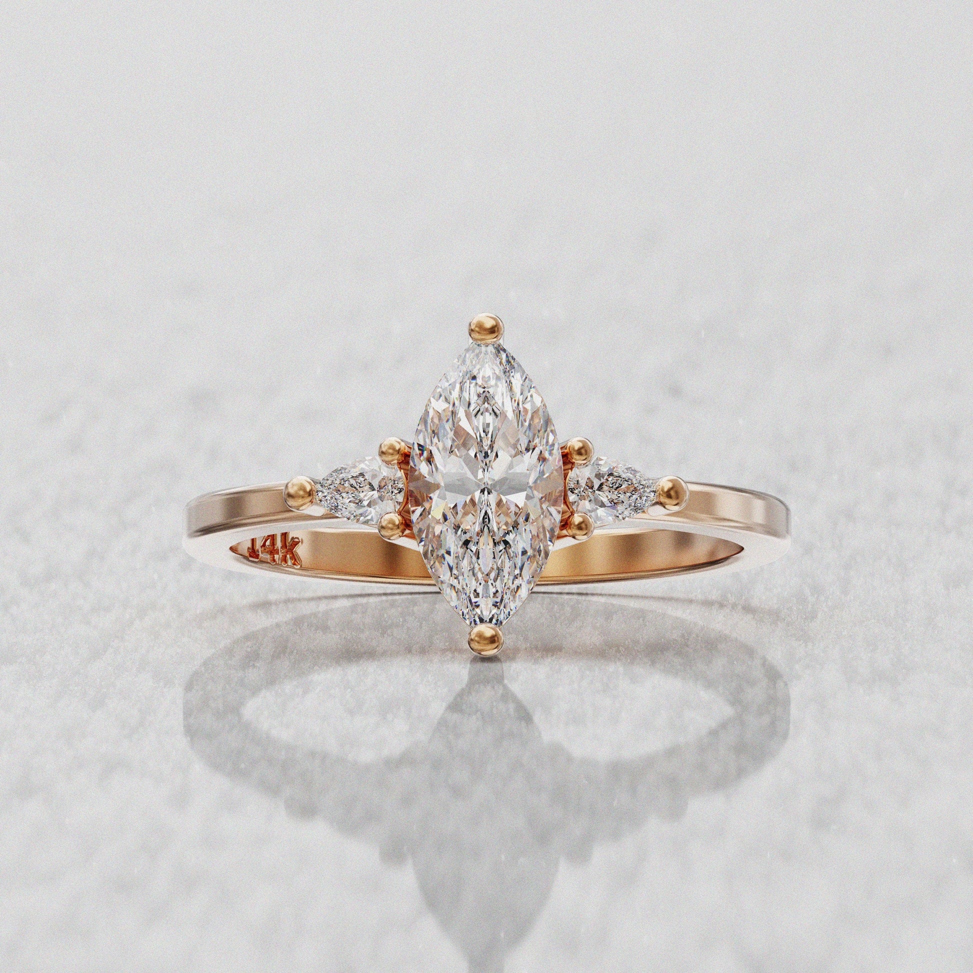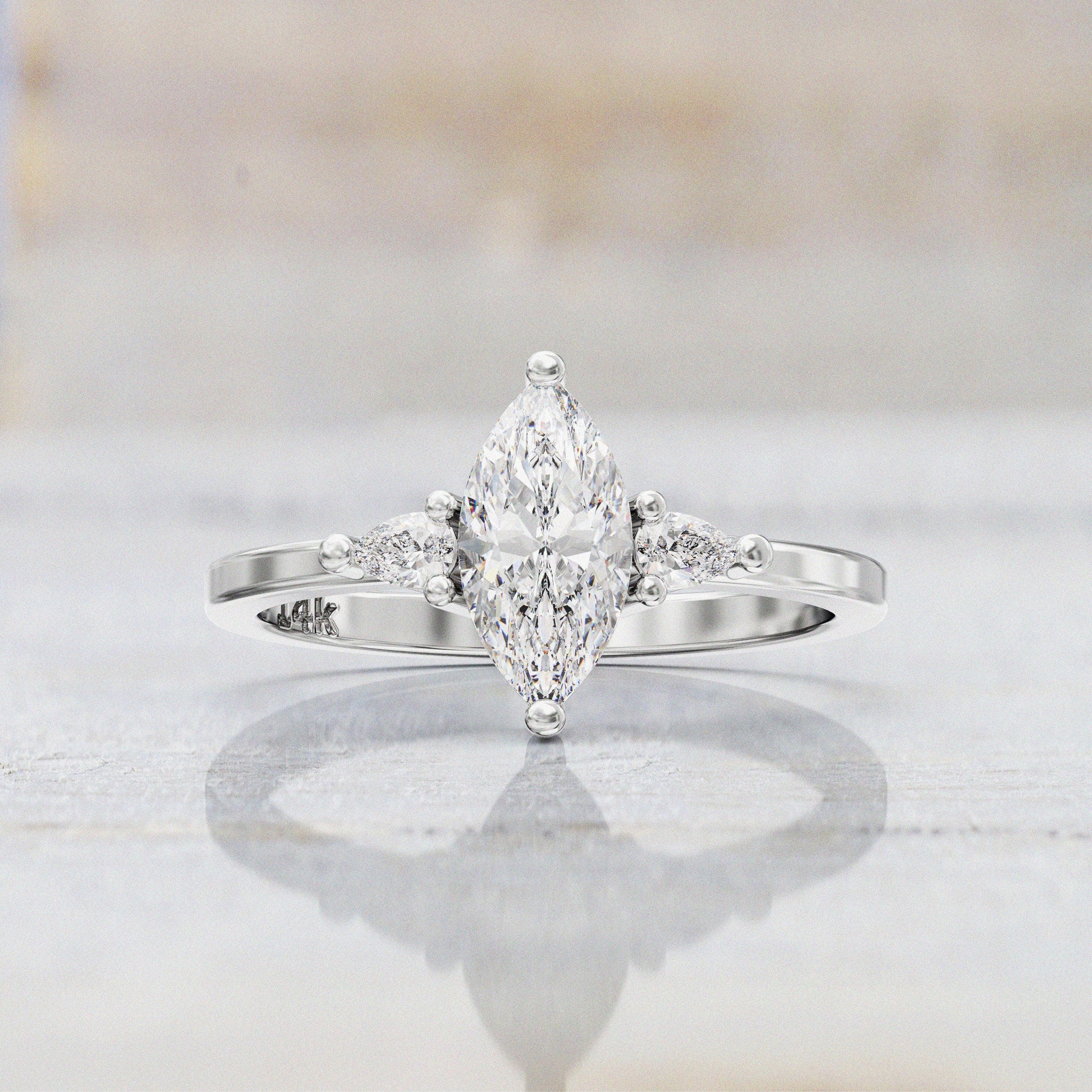 0.7 CT Marquise Cut Moissanite Three Stone Engagement Ring