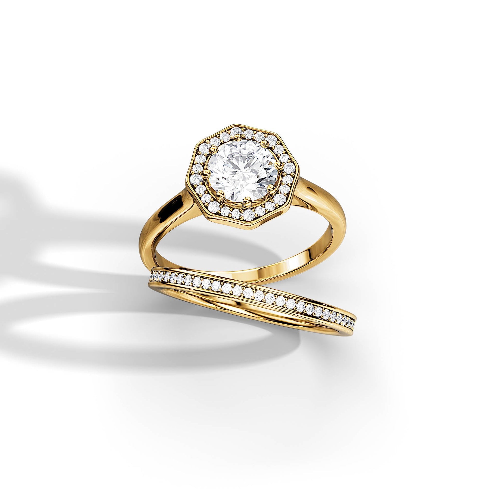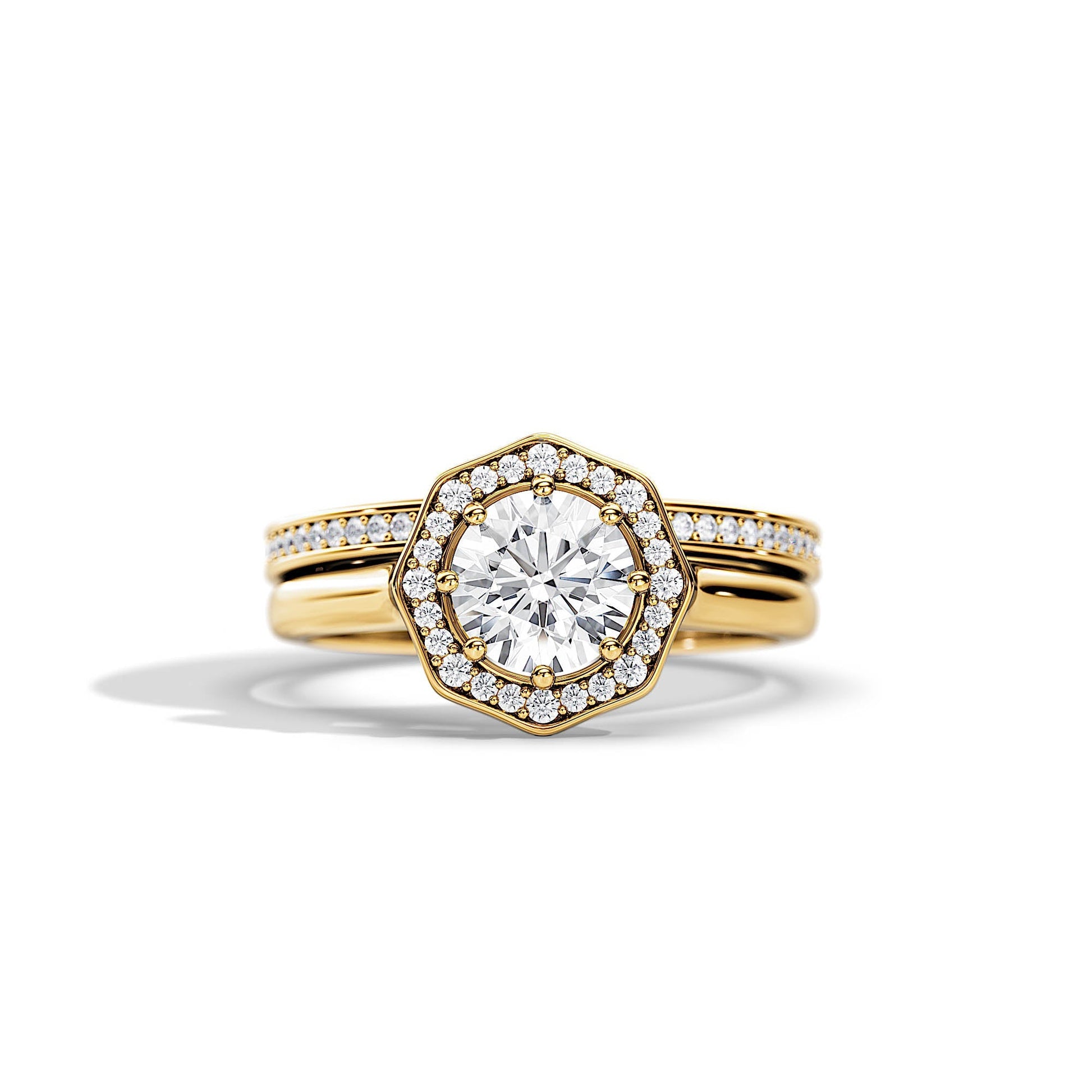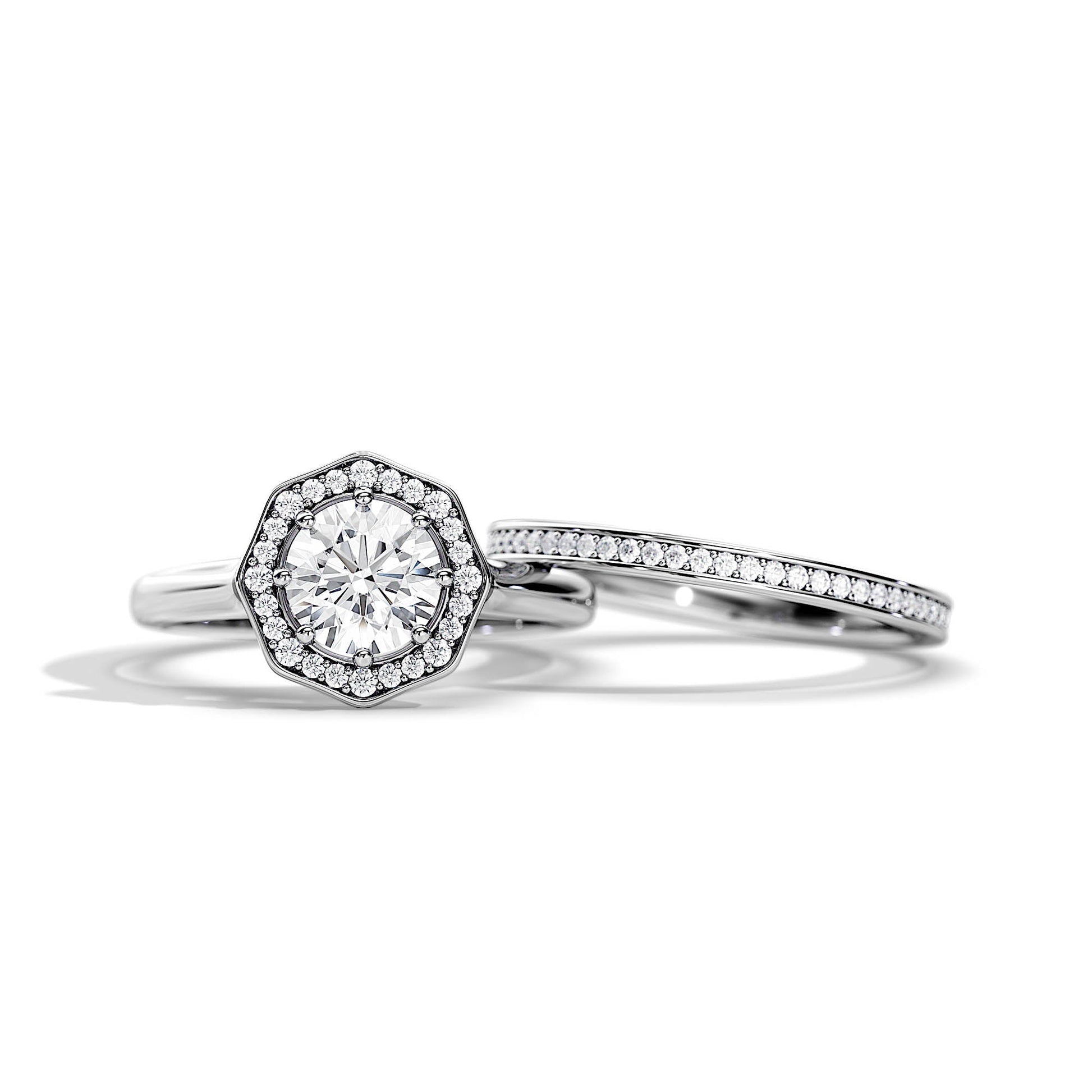 2.0 CT Round Moissanite Halo Setting Bridal Ring Set