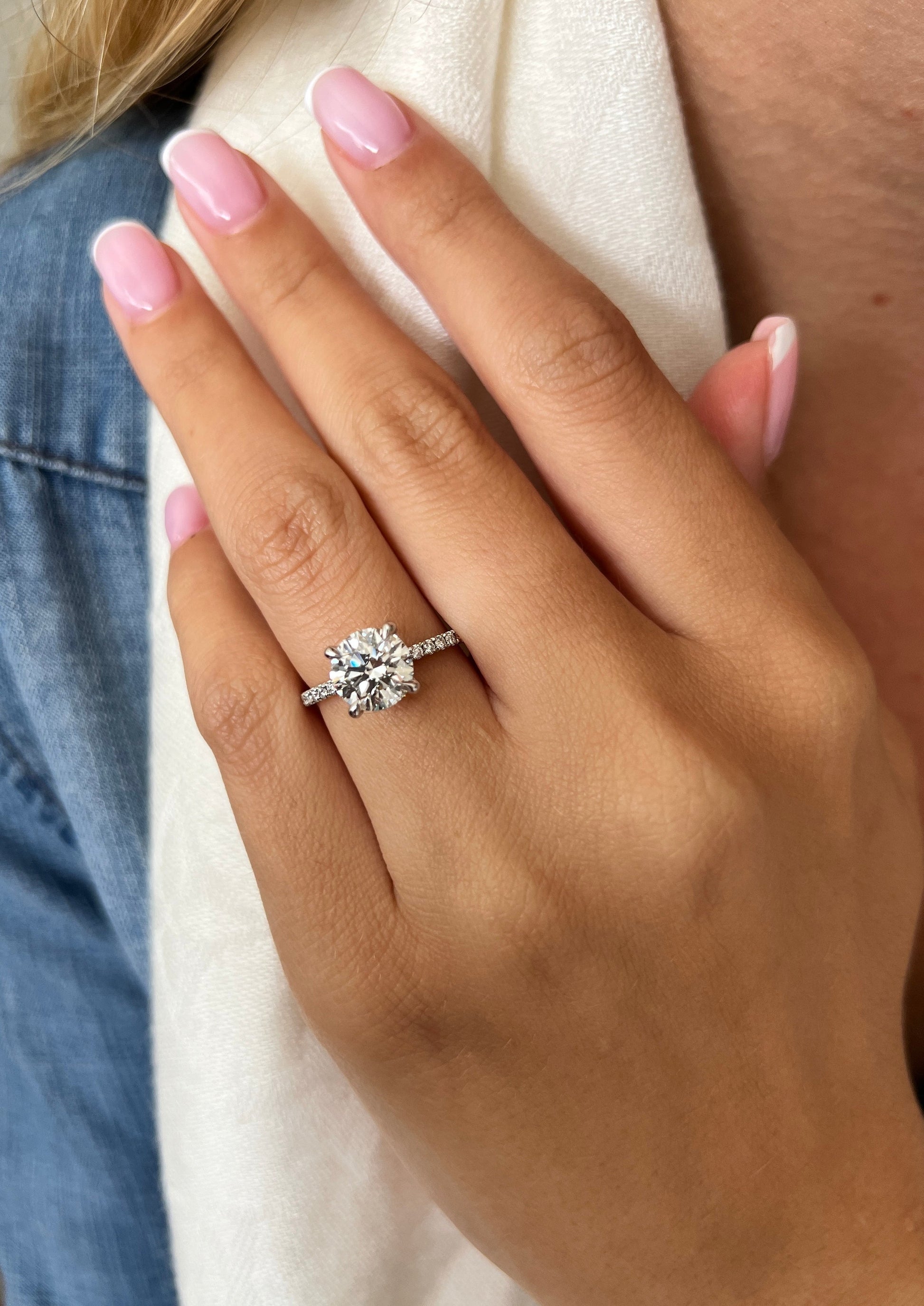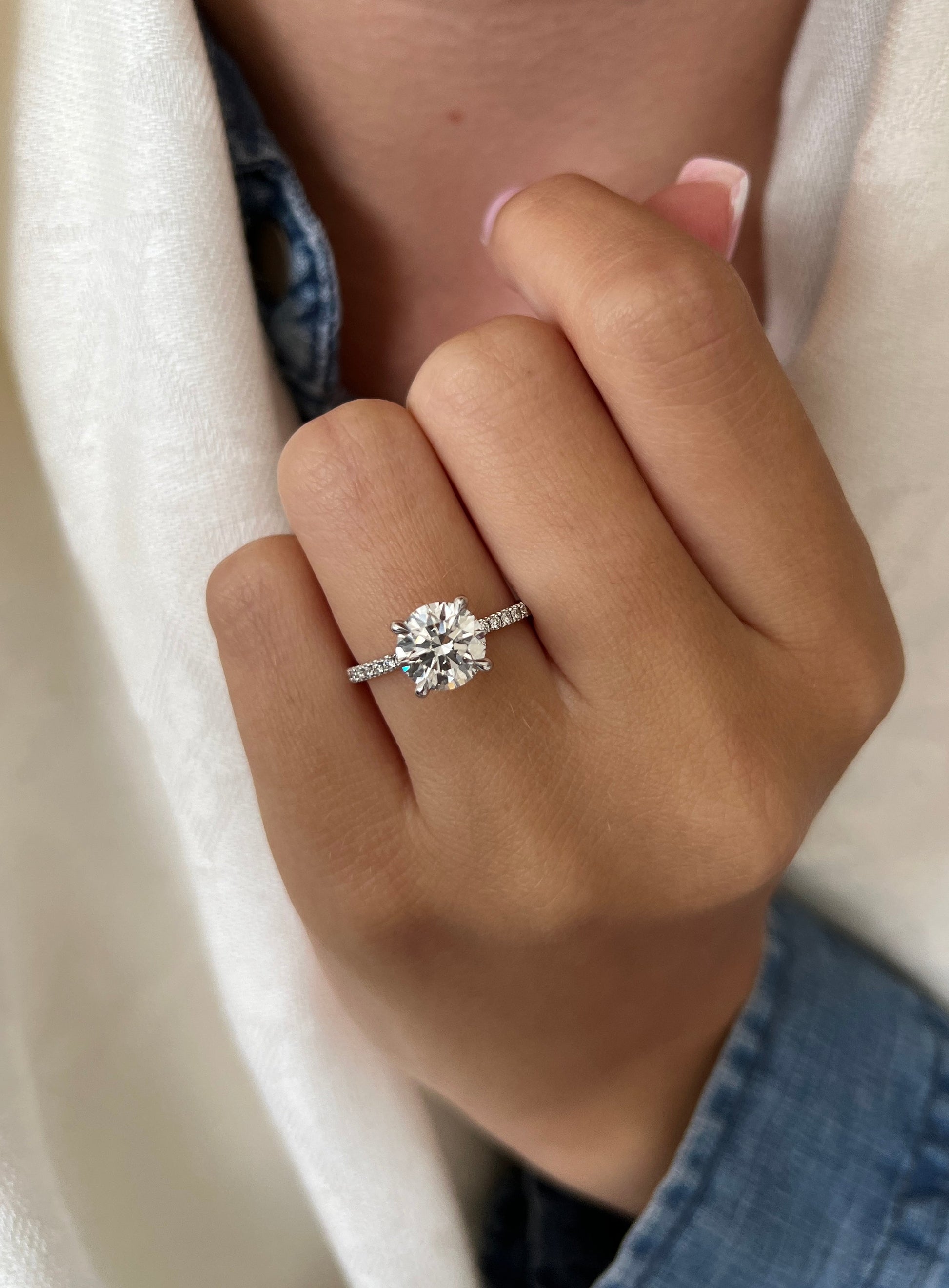 2.0 CT Round Moissanite Hidden Halo & Pave Setting Engagement Ring