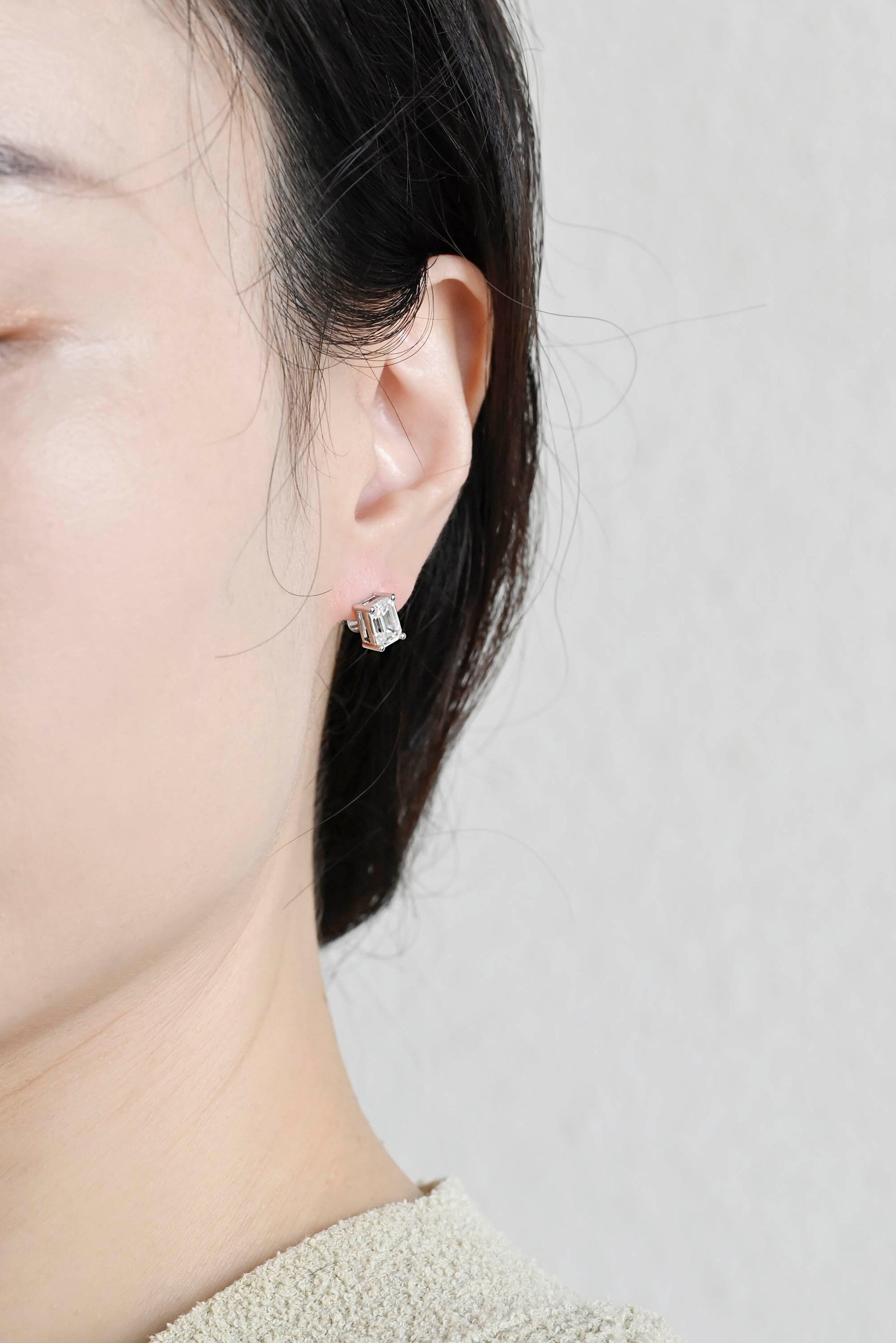 2.0 TCW Emerald Moissanite Diamond Solitaire Stud Earrings