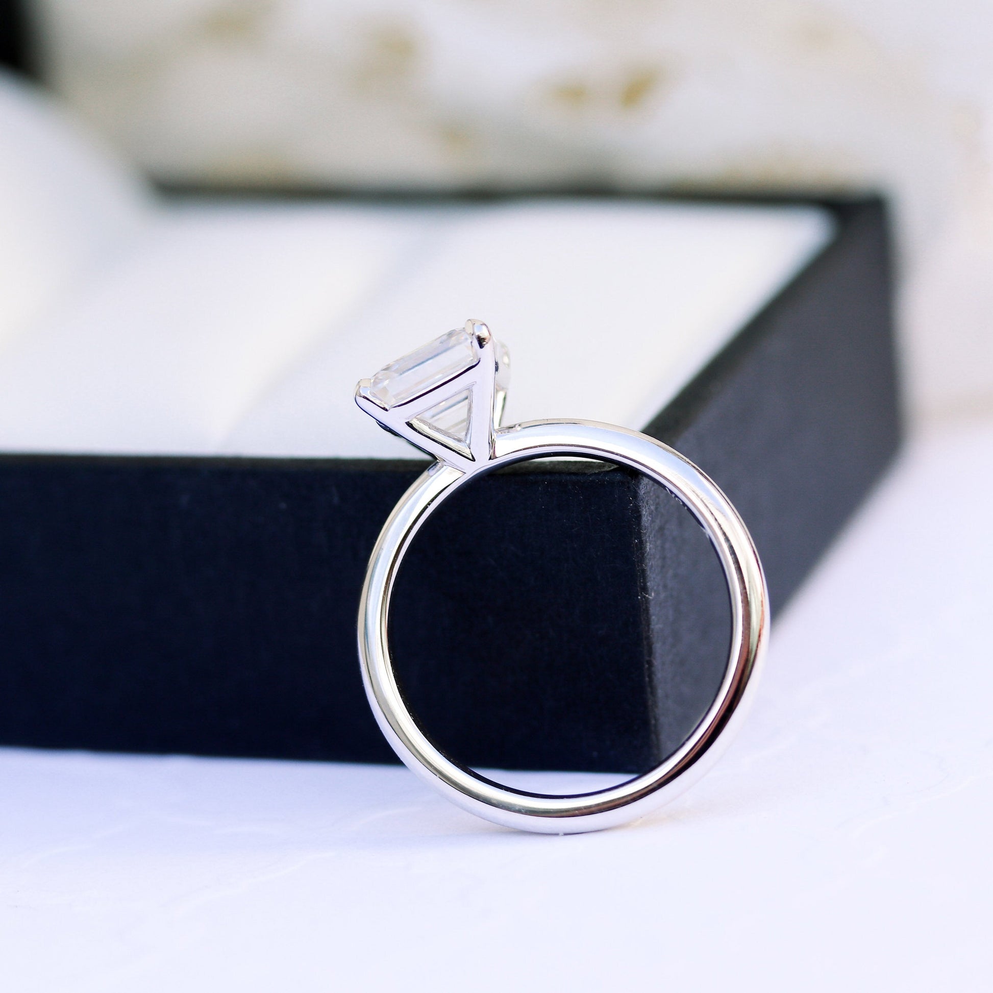 2.0ct Asscher Cut Moissanite Diamond Petite Solitare Engagement Ring